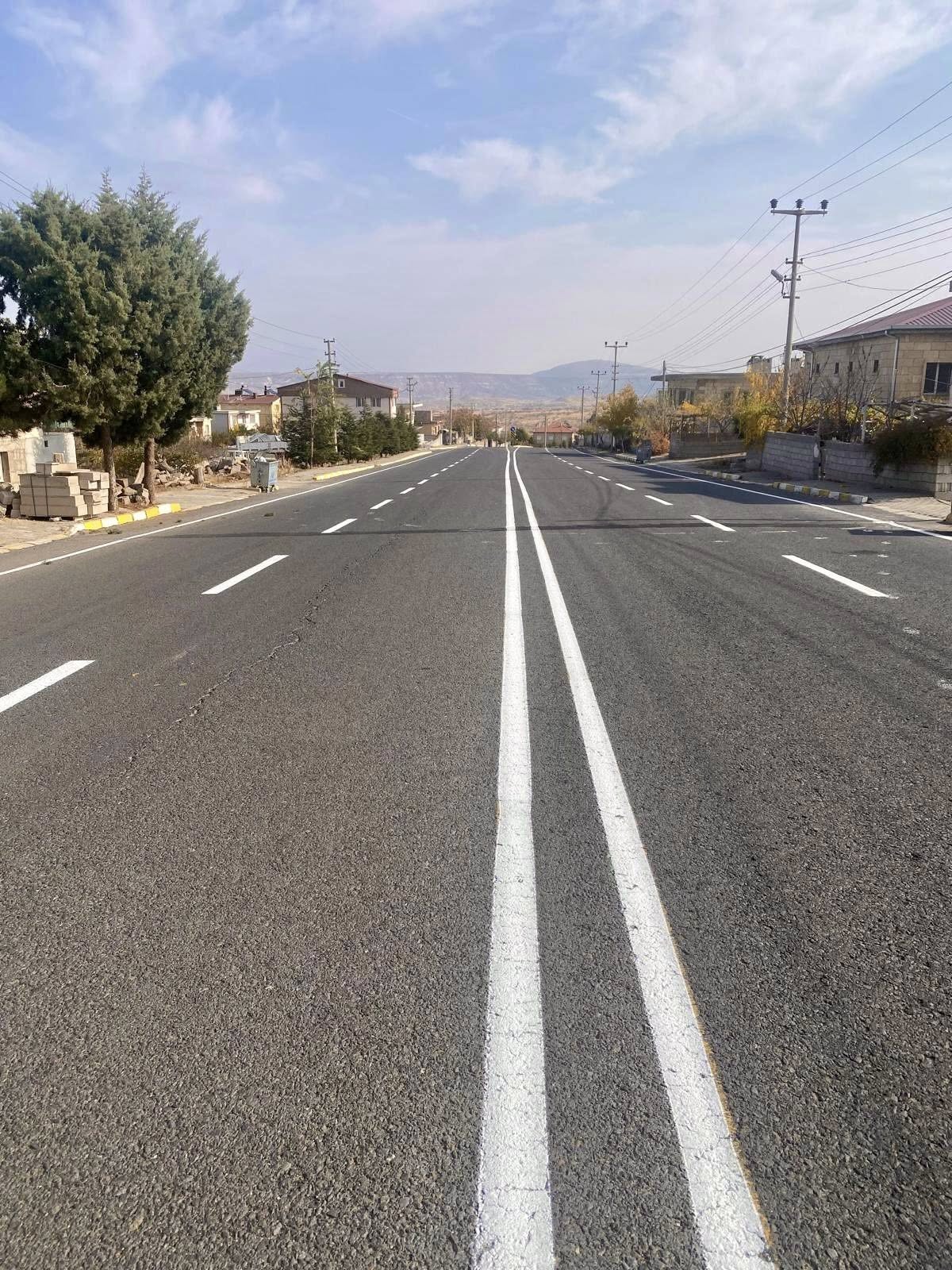 Nevşehir Merkez ilçeye bağlı Kavak Beldesi’nde, trafik güvenliğini artırmak ve sürücülere daha konforlu bir ulaşım sağlamak amacıyla yol çizgileri yenileme çalışması gerçekleştirildi.
