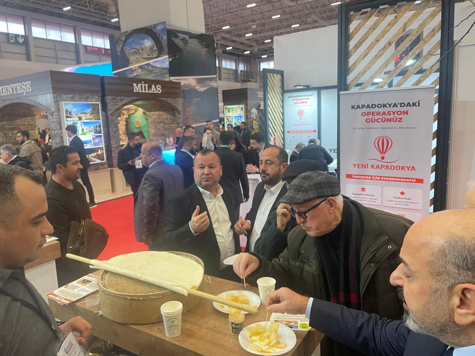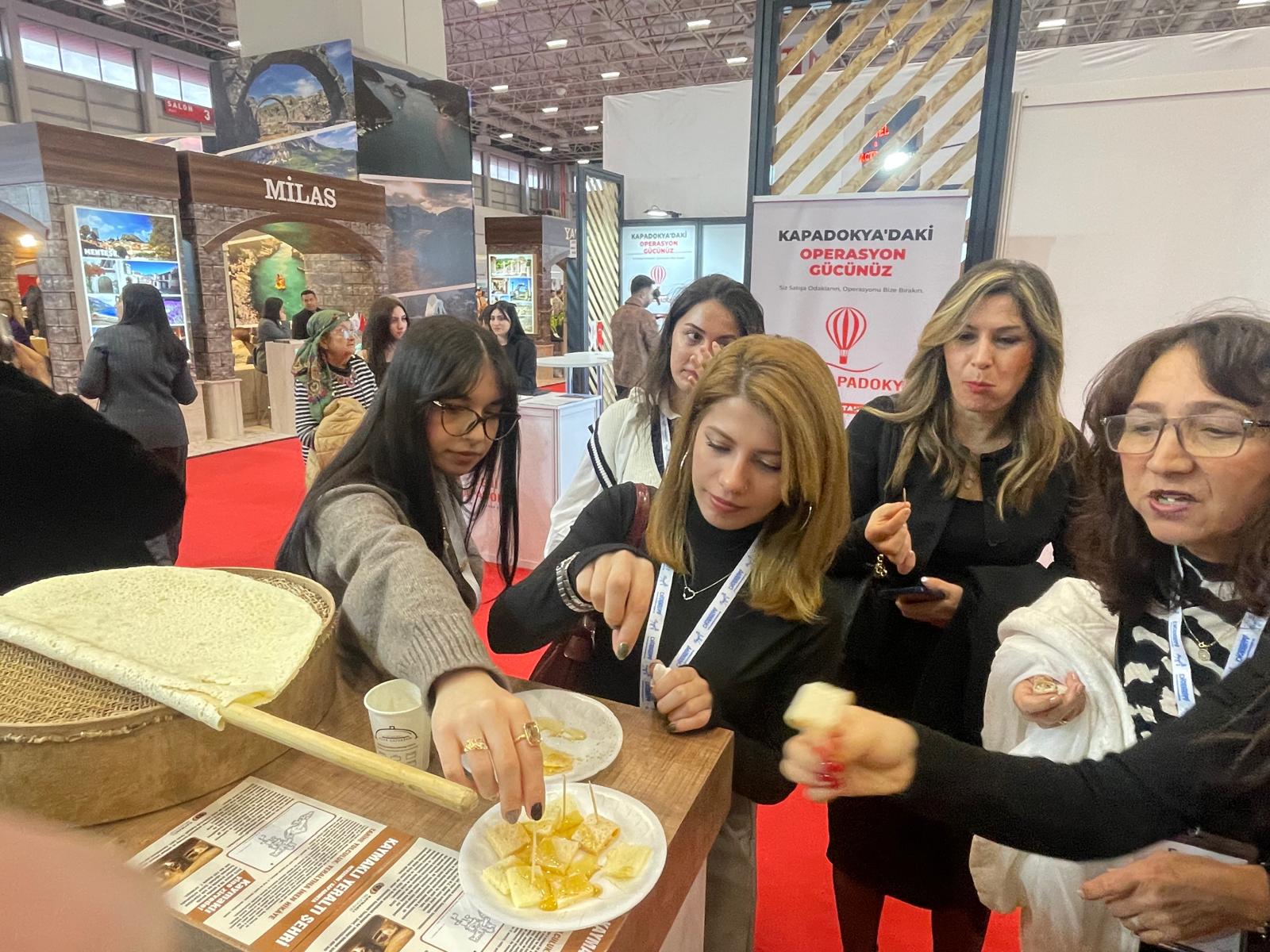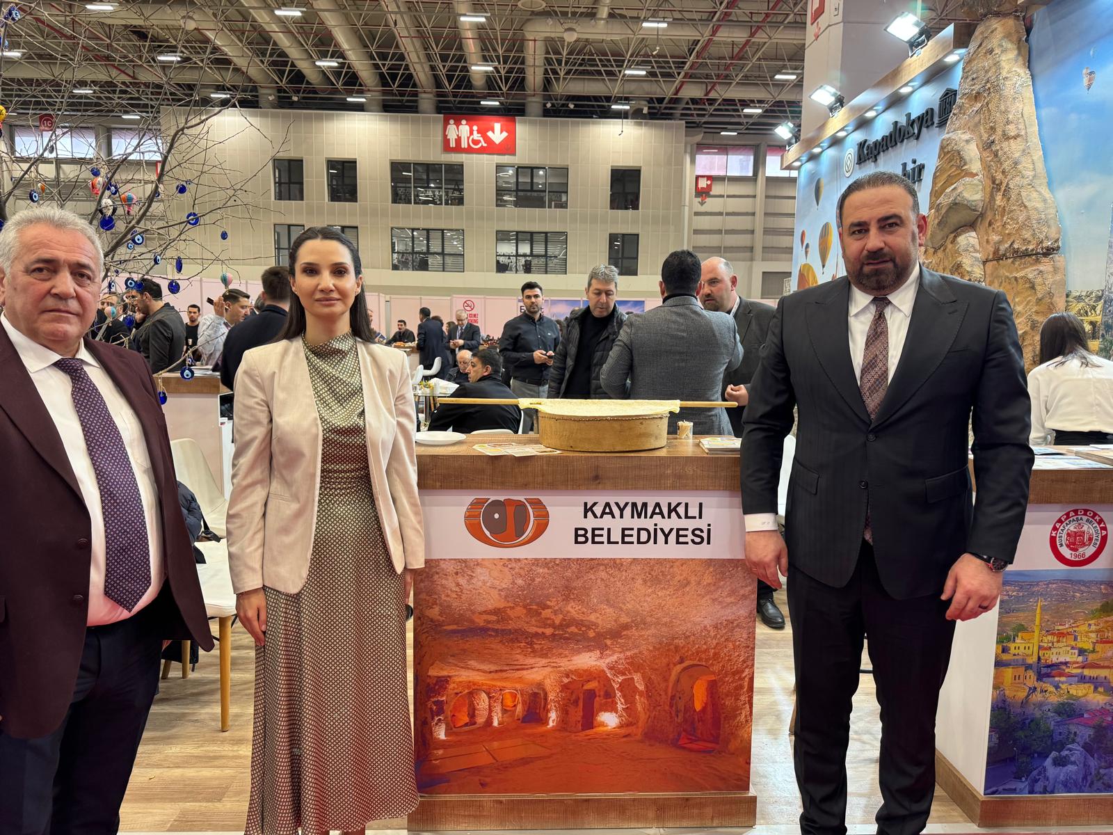 Dünyanın en büyük turizm fuarları arasında yer alan EMITT Turizm Fuarı, Kapadokya’nın önemli destinasyonlarından Kaymaklı’yı tarihi ve kültürel zenginliklerinin yanı sıra yöresel lezzetleriyle de öne çıkardı. Fuarda sergilenen Kaymaklı Kuru Kaymağı, ziyaretçilerin yoğun ilgisiyle karşılaşarak fuarın gözde tatları arasında yer aldı.
