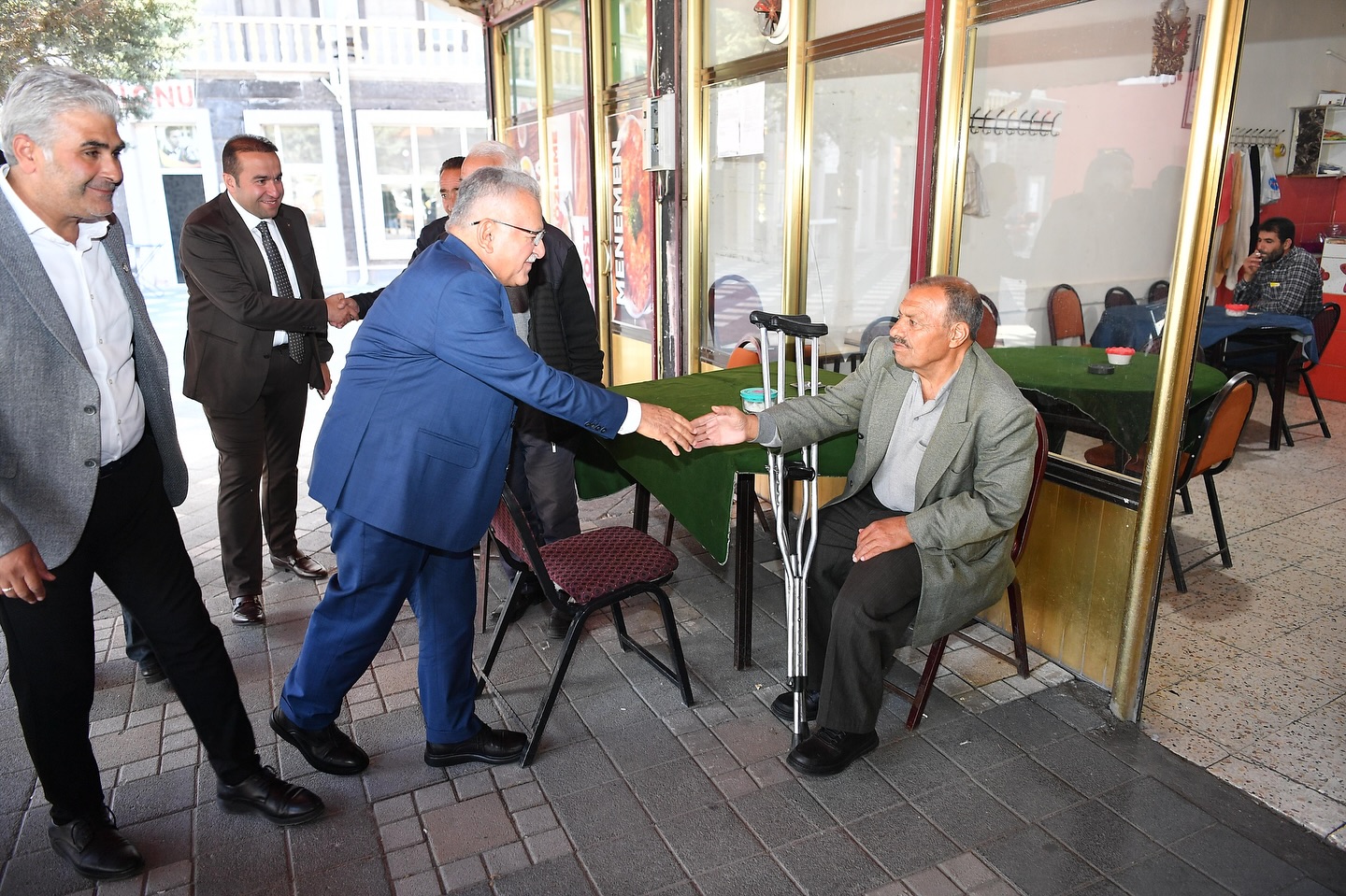 Ziyaret sırasında esnafın talep ve önerilerini dinleyen Başkan Büyükkılıç, “Kalaba Belediye Başkanımız Erdal Yorgancı ile birlikte esnaf kardeşlerimizi ziyaret ettik, hal hatır sorduk, çaylarını içtik. Sıcak muhabbetleri, içten karşılamaları için hepsine teşekkür ediyorum. Emekleri bereketli, kazançları bol olsun.” ifadelerini kullandı.