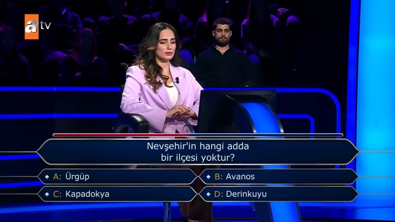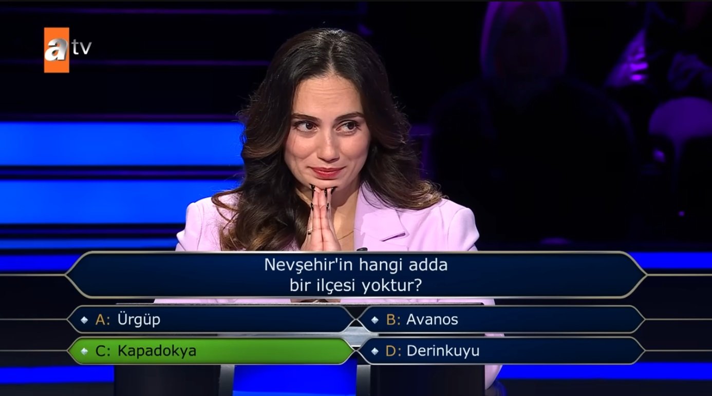 Kim Milyoner Olmak İster? adlı bilgi yarışmasının 1213. bölümünde sorulan Nevşehir sorusu, ekran başındaki izleyicilerin dikkatini çekti. Oktay Kaynarca’nın sunumuyla yayınlanan programda yarışmacıya yöneltilen soru şu şekilde oldu: