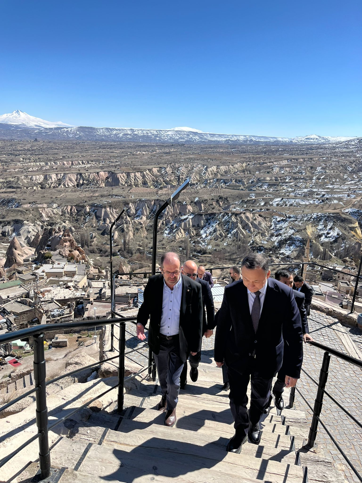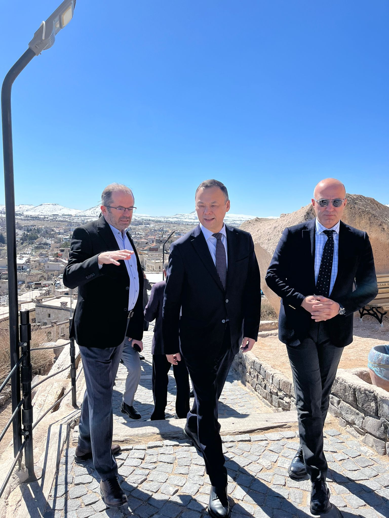 Kırgızistan’ın Ankara Büyükelçisi Ruslan Kazakbaev, Kapadokya’nın önemli turizm merkezlerinden biri olan Uçhisar Kalesi’ni ziyaret etti.