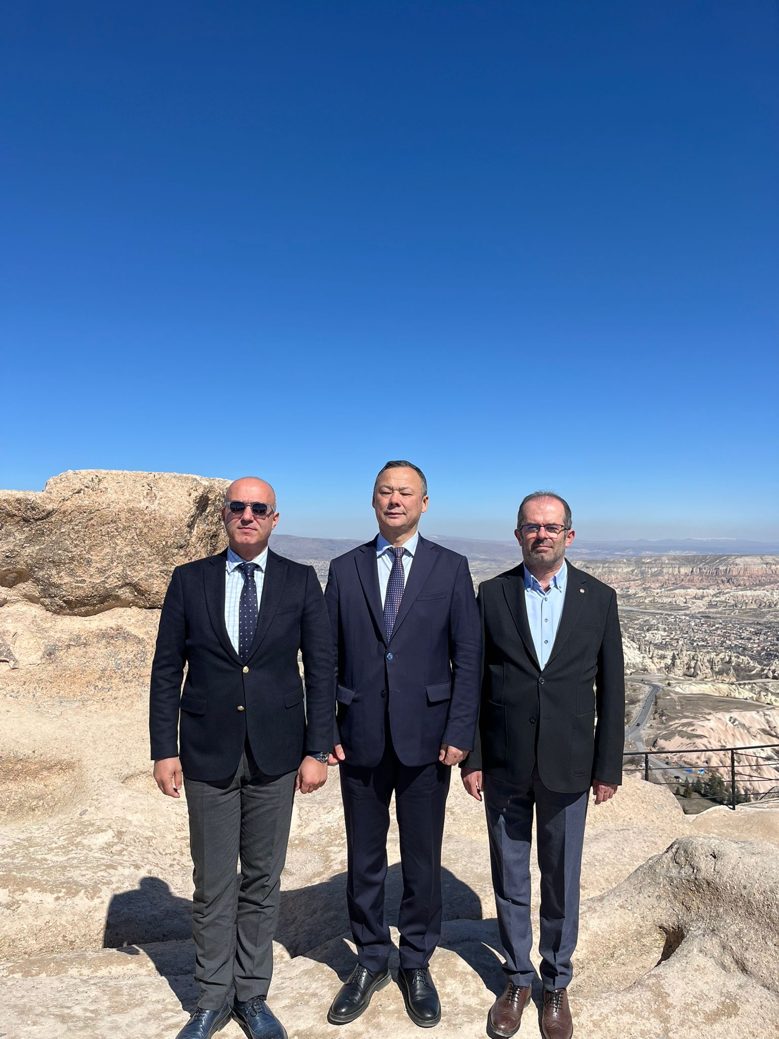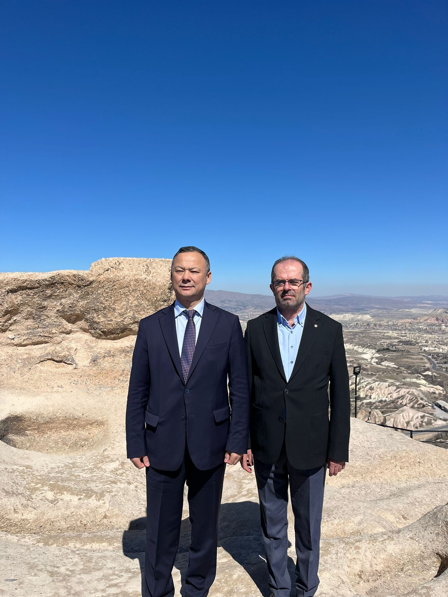 Ziyaret kapsamında Uçhisar Kalesi’nin panoramik manzarasını da izleyen Kazakbaev, Kapadokya’nın doğal ve tarihi zenginliğinin etkileyici olduğunu ifade etti.