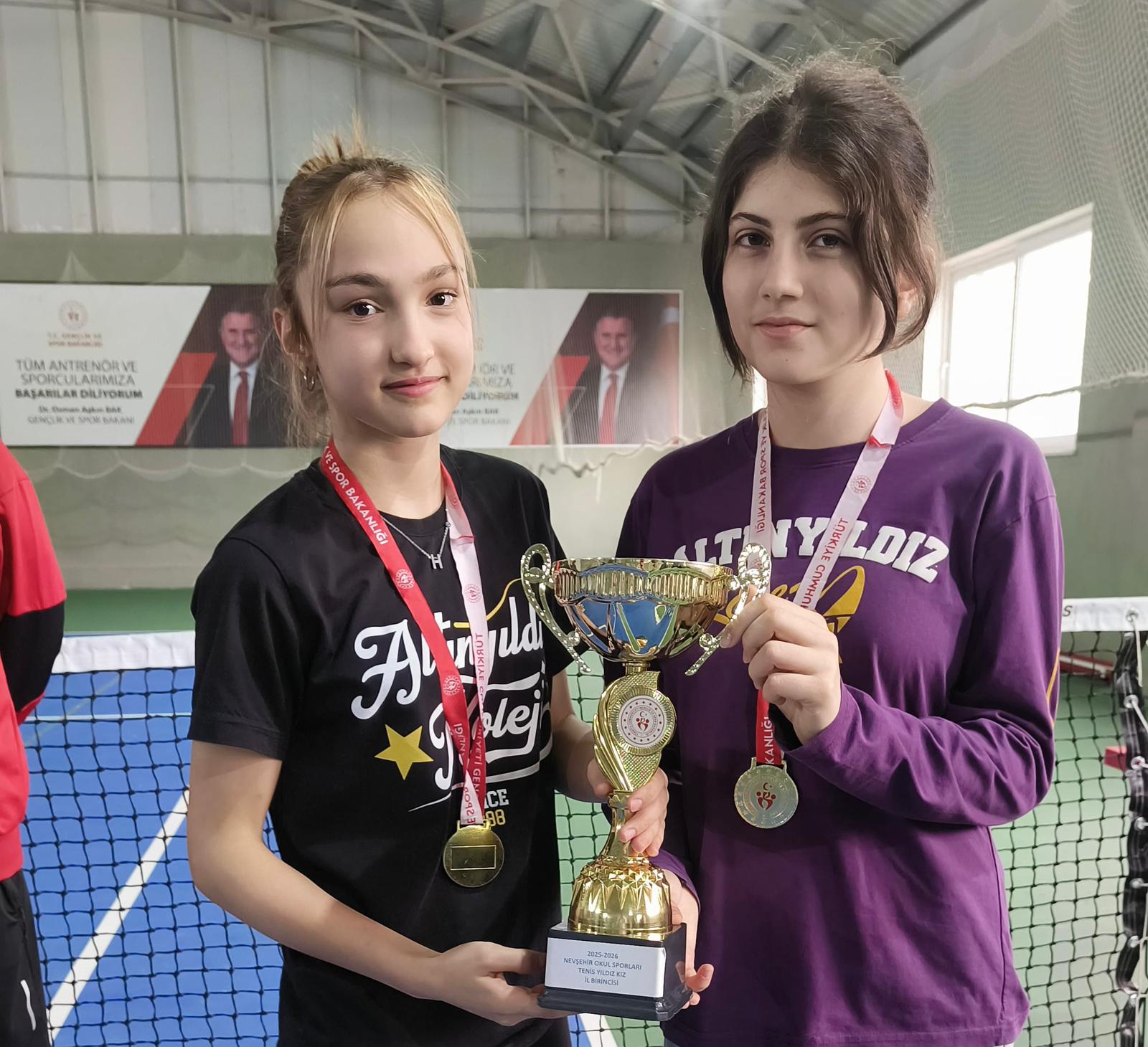Altınyıldız İlköğretim Kurumu, Okul Sporları Yıldız Kız-Erkek Kort Tenisi İl Müsabakalarında önemli bir başarıya imza attı. Yıldız kızlar kategorisinde il birincisi olan Hayat Er ve Duru Korkmaz, 7 Mart’ta Mersin’de düzenlenecek bölge finallerinde ilimizi temsil edecek.