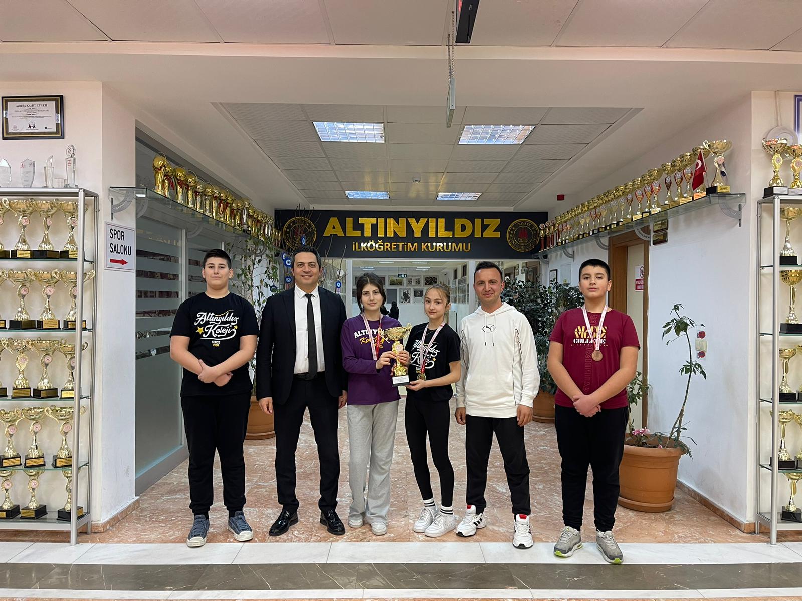 Altınyıldız İlköğretim Kurumu öğrencileri Hayat Er ve Duru Korkmaz, yıldız kızlar kategorisinde sergiledikleri üstün performansla takım halinde il birincisi olmayı başardı. Turnuva boyunca disiplinli oyun anlayışları, teknik becerileri ve mücadeleci ruhlarıyla dikkat çeken sporcularımız, final karşılaşmalarında gösterdikleri kararlılıkla şampiyonluğa ulaştı.