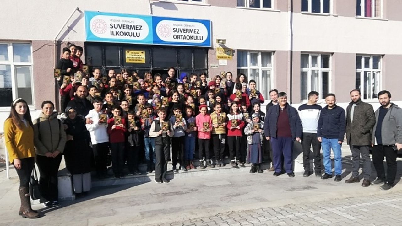 Suvermez Köyü İlkokulu ve Ortaokulu öğrencilerine yazar Osman Aytekin’in kitabını hediye etti.