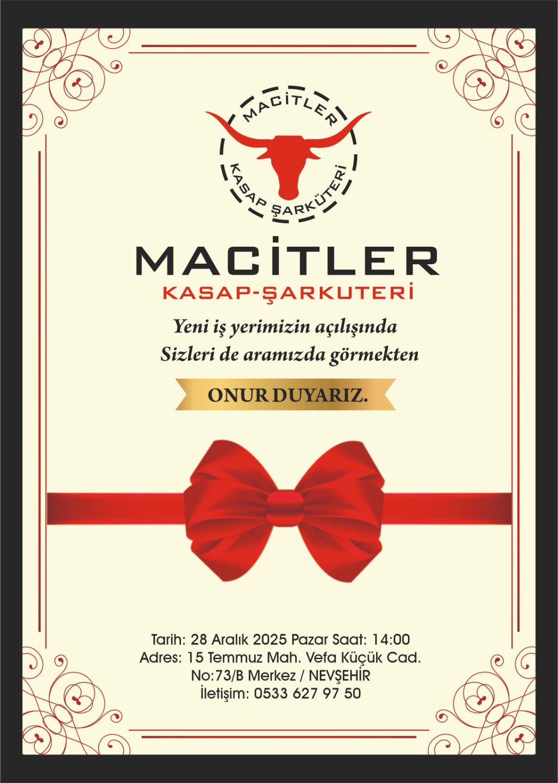 Macitler Kasap–Şarküteri; taze, hijyenik ve kaliteli et ürünleri, zengin şarküteri çeşitleri ve müşteri memnuniyetini esas alan hizmet anlayışıyla Nevşehirlilere hizmet vermeyi hedefliyor. İşletmede günlük taze ürünlerin yanı sıra, özenle seçilmiş et çeşitlerinin de yer alacağı belirtildi.