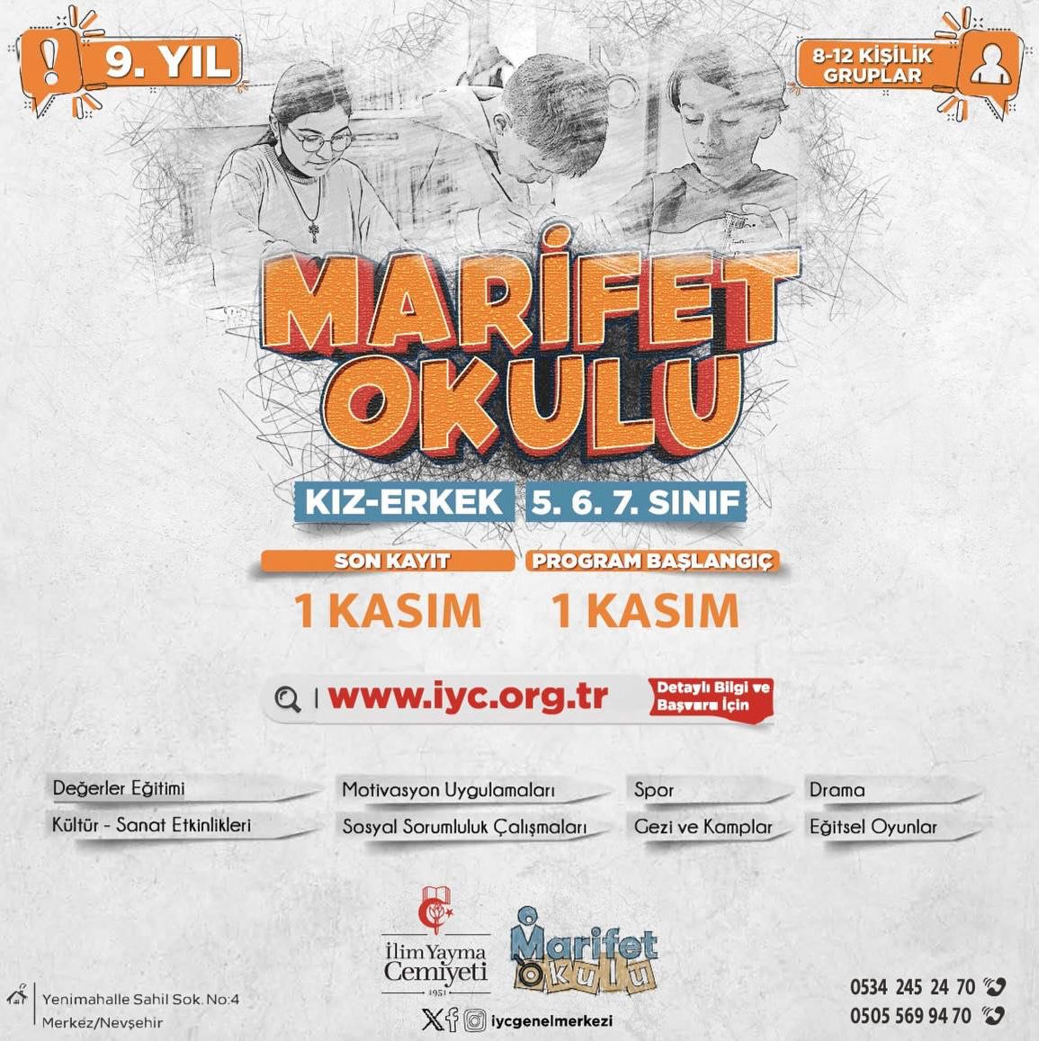Marifet Okulu, çocukların hem manevi hem de kişisel gelişimlerini desteklemeyi amaçlayan özel bir eğitim programıdır. Okul takvimine uyumlu biçimde Cumartesi günleri yarım gün olarak yürütülür ve toplam 25 hafta sürer.