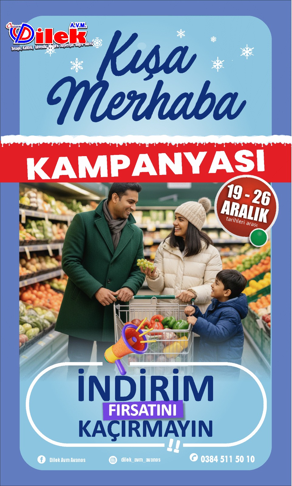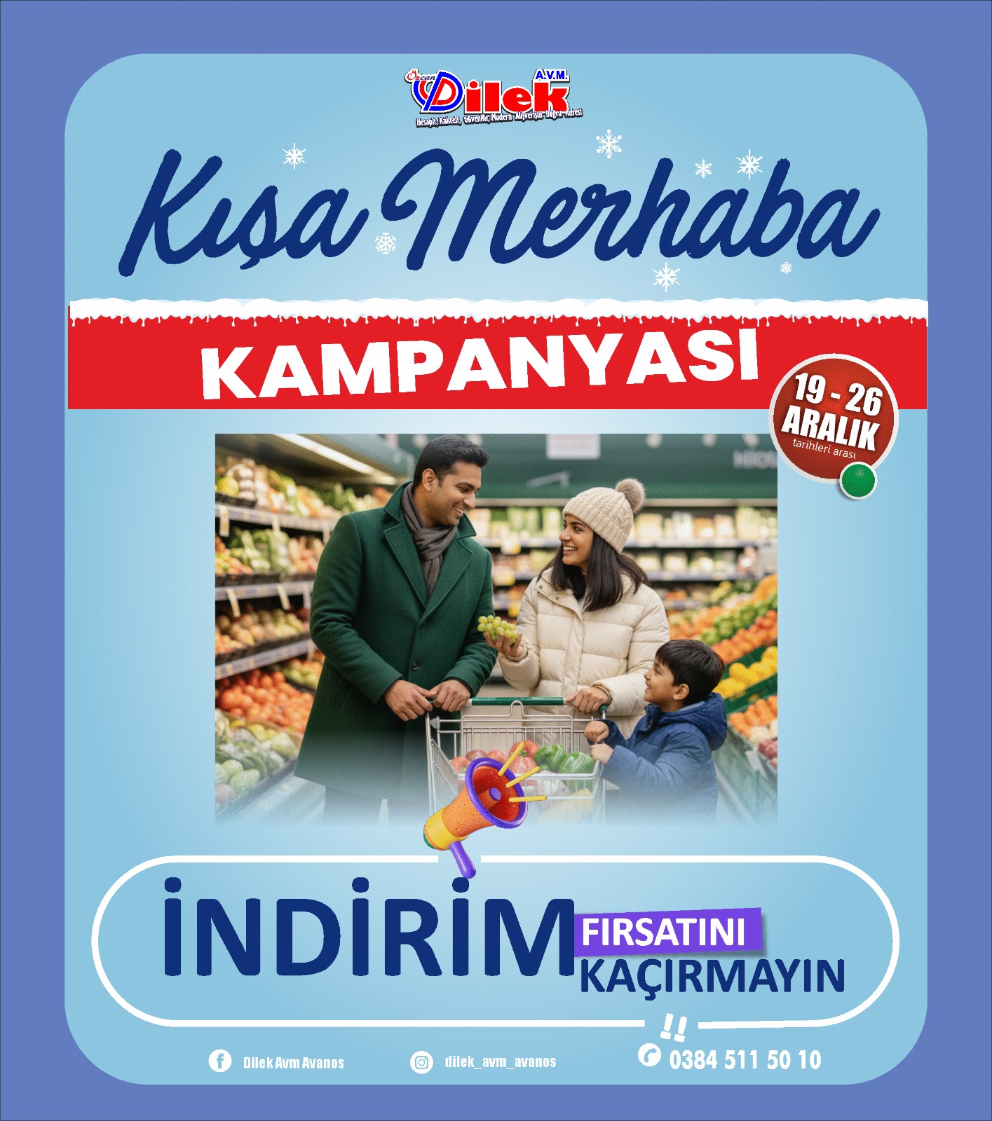 Nevşehir'in Avanos ilçesinde Marketçilik sektörünün lider kuruluşu Özcan Dilek AVM; ‘Bizim için değerlisin hemşerim’ diyerek "Alışverişlerinizi erteleyin. Bizi bekleyin." sloganı ile "Kışa Merhaba" kampanyası başlıyor, gıdadan kozmetiğe, şarküteriden sebze-meyveye kadar tüm ürünlerde büyük indirimler yaptı.