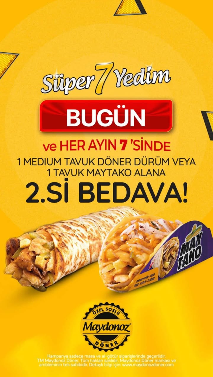 Her ayın 7’sinde, Maydonoz Döner şubelerinde geçerli olan kampanya kapsamında;