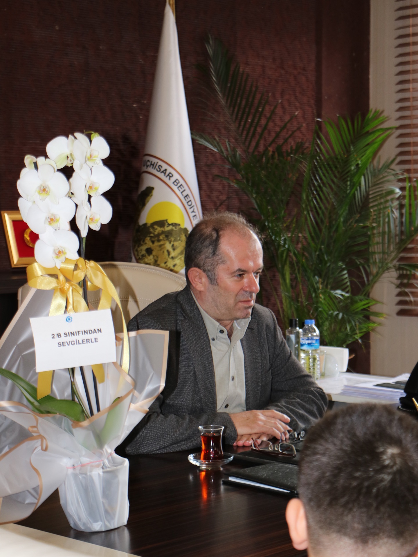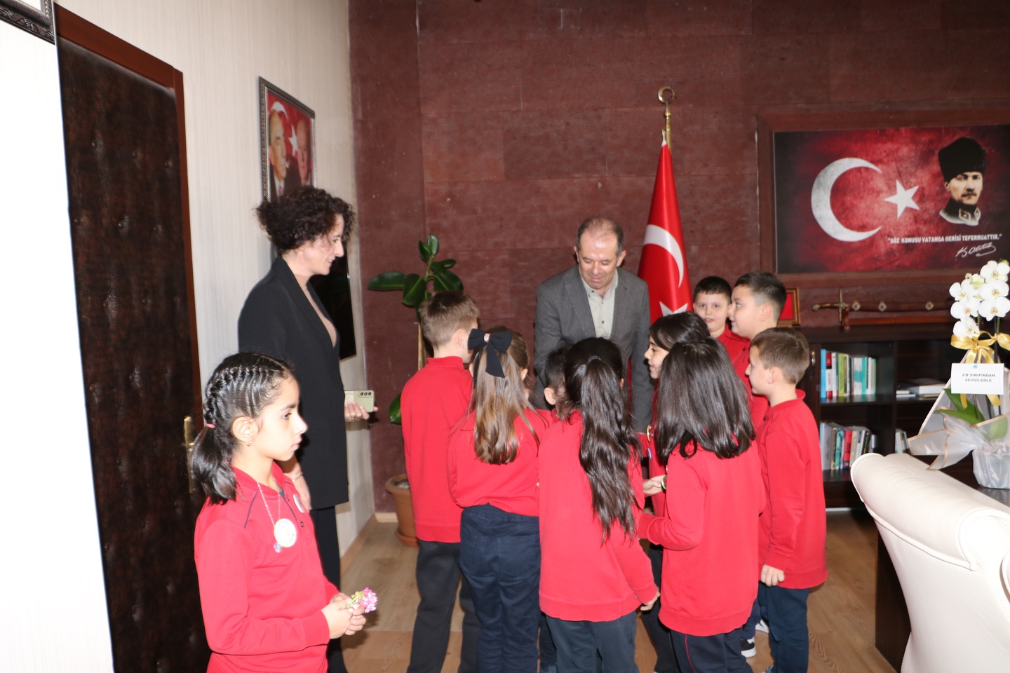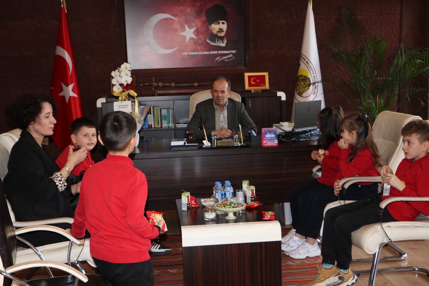 Haydar Çankaya İlkokulu 2/B sınıfı öğrencileri, Abdullah Çamcı’yı makamında ziyaret etti.