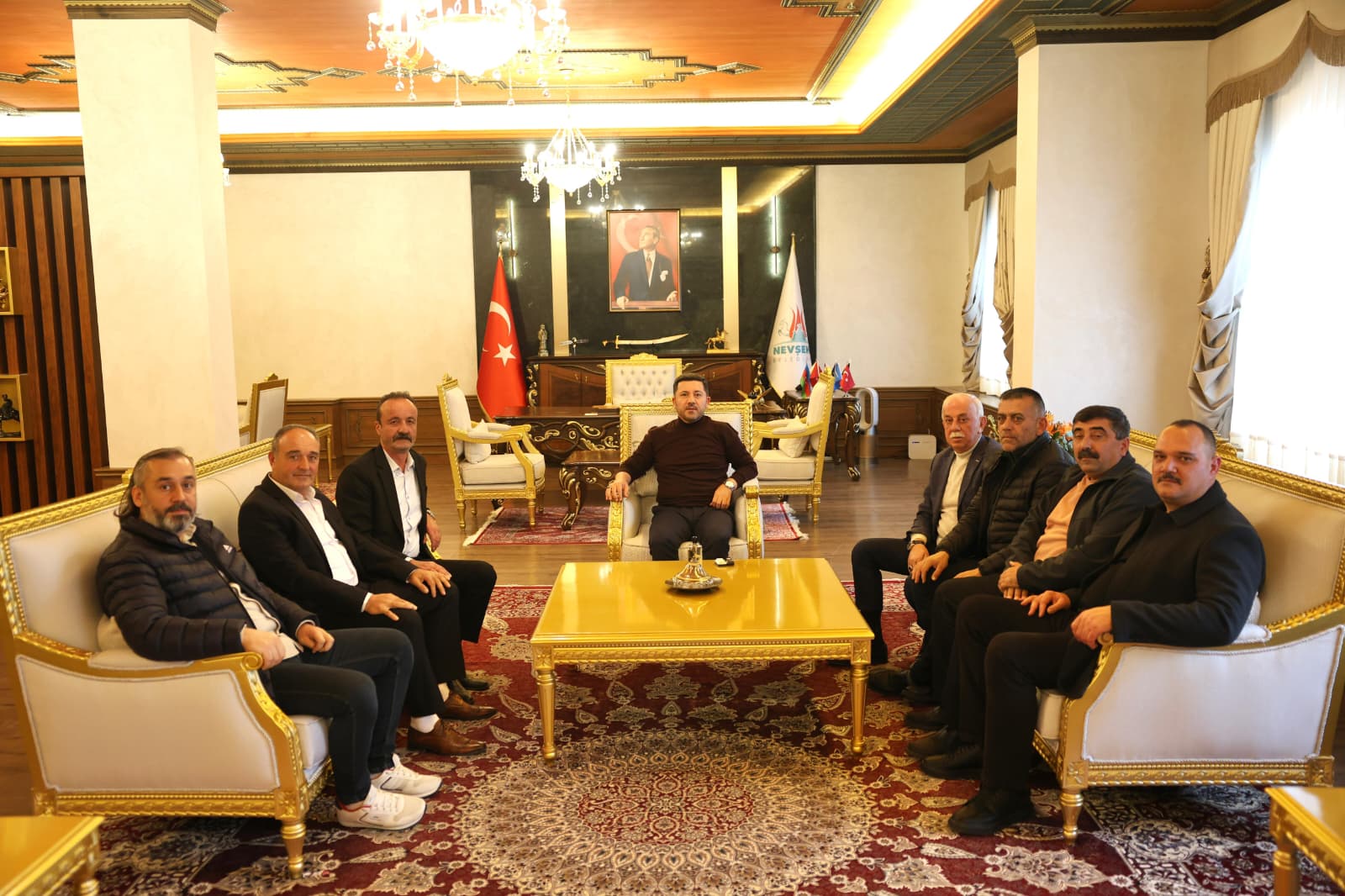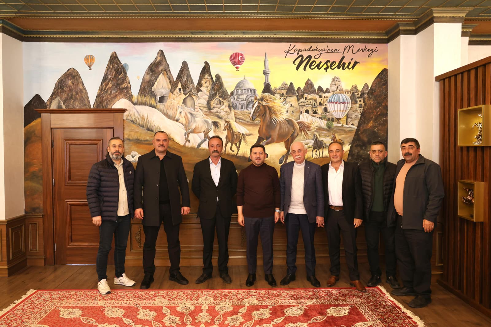 Nevşehir Şoförler ve Otomobilciler Odası Başkan Adayı Mustafa Düzgün, beraberindeki heyetle birlikte Nevşehir Belediye Başkanı Rasim Arı’yı makamında ziyaret etti.