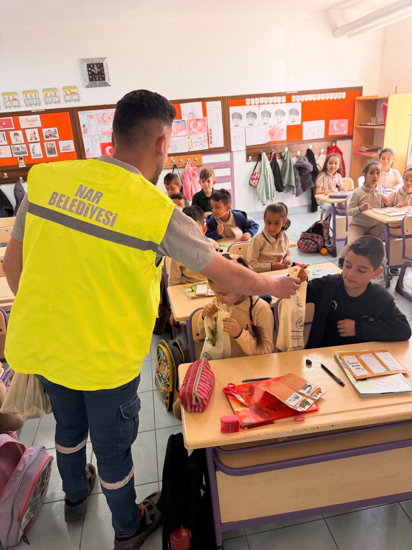 Nevşehir'in merkez ilçeye bağlı Nar kasabasında çevre bilinci ve doğa sevgisini artırmaya yönelik anlamlı bir etkinlik gerçekleştirildi. Nar Belediyesi öncülüğünde düzenlenen program kapsamında, kasabadaki okullarda öğrencilere fidan dağıtımı yapıldı.