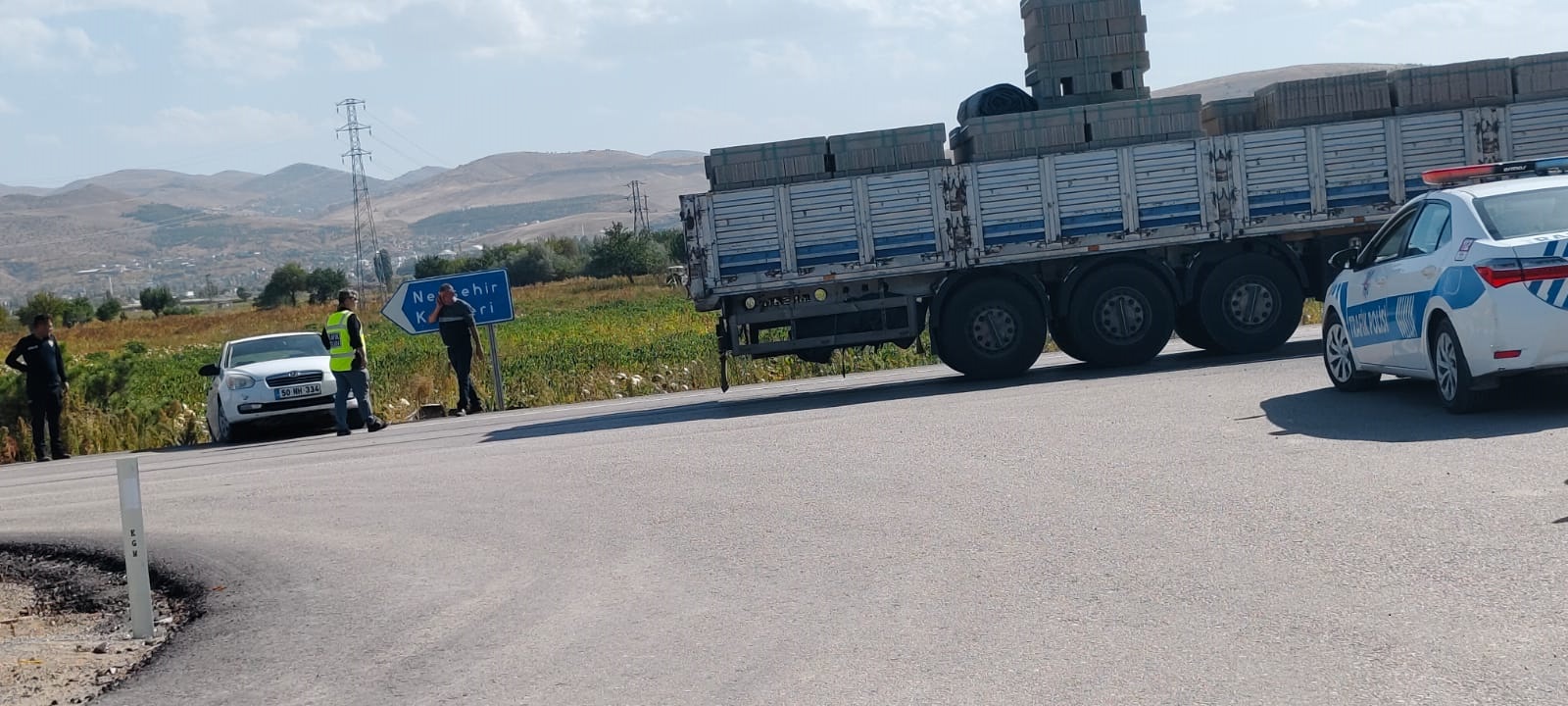 Nevşehir Acıgöl girişinde briket yüklü bir tır ile otomobilin karıştığı trafik kazasında araçlarda hasar meydana geldi.