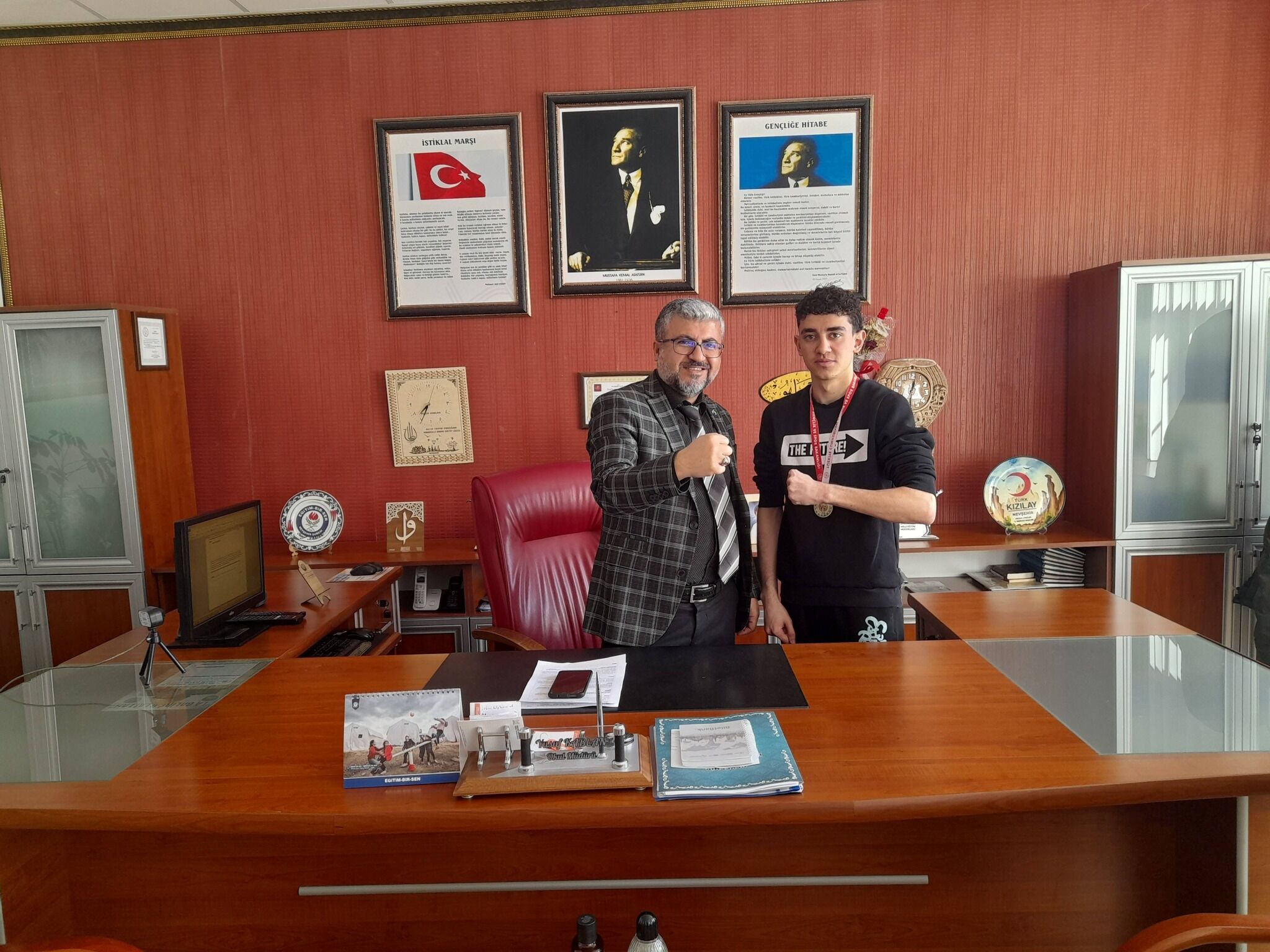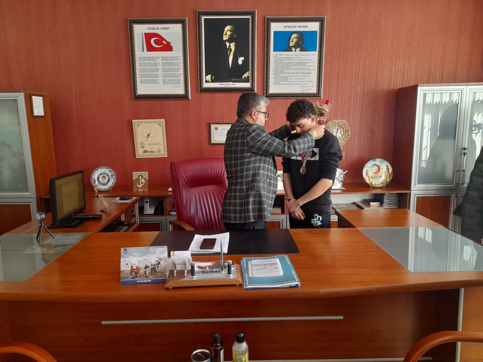Müdür Kablan, sporcuyu, emeği geçen öğretmenleri ve ailesini tebrik ederek, “Başarılarının devamını diliyoruz” ifadelerini kullandı.