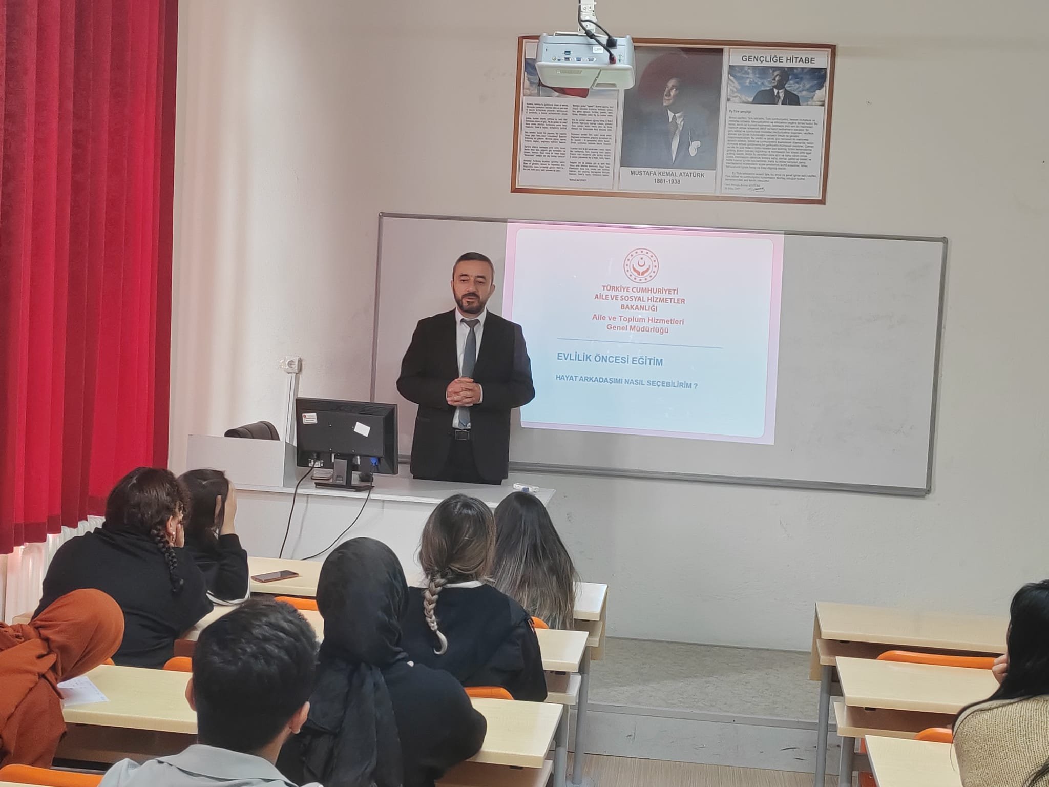 Eğitim içeriklerinde doğru eş seçimi, aile hukuku, evlilikte etkili iletişim becerileri ve sağlık gibi önemli başlıklar ele alınıyor. Program kapsamında İl Müdür Yardımcısı ve Sosyal Hizmet Uzmanı Fatih Özel tarafından yapılan sunumlarda, evlilik sürecinde karşılaşılabilecek riskler ve bu risklerin yönetimine ilişkin bilgilendirmeler yapılıyor.