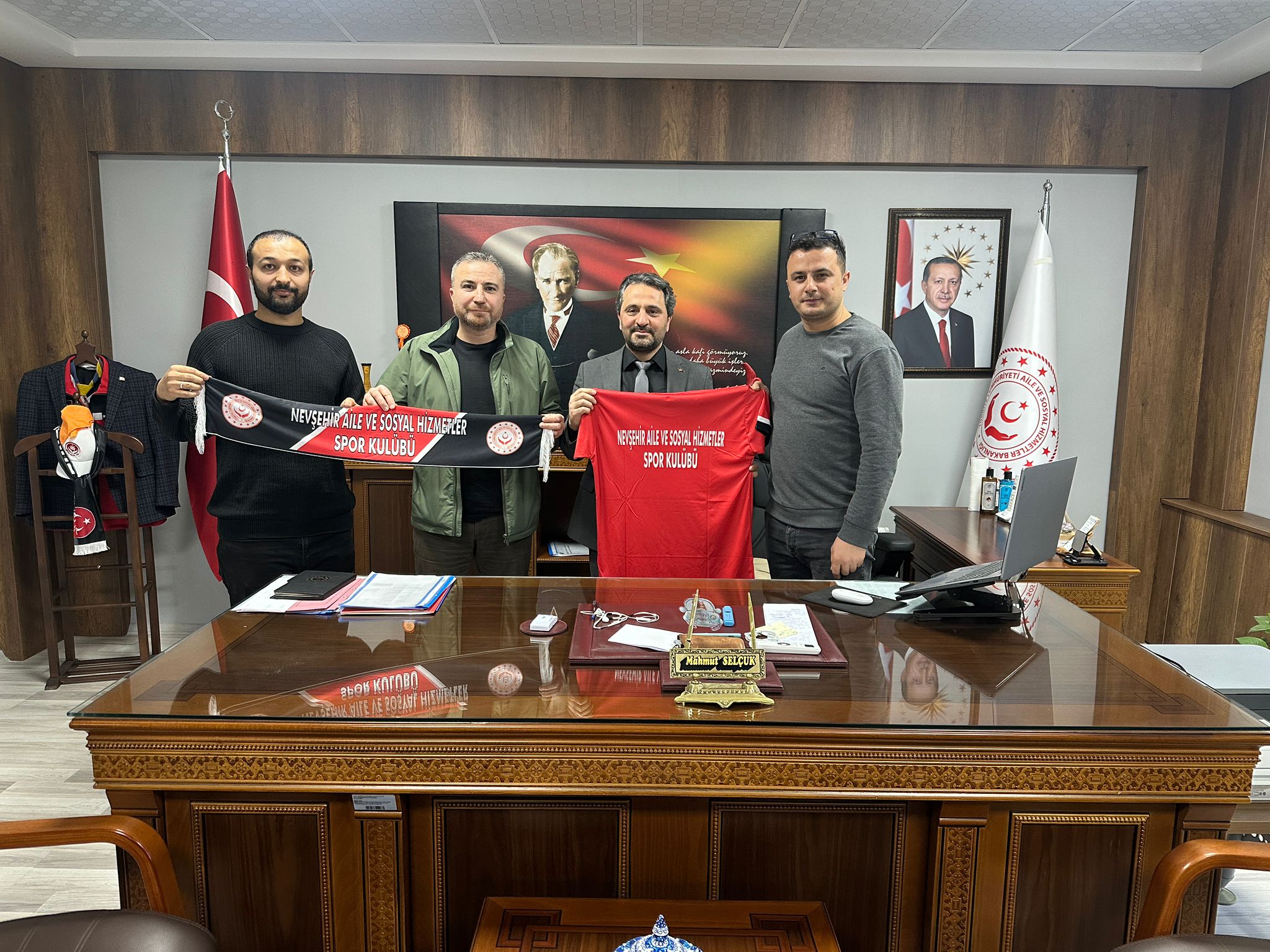 Nevşehir Aile ve Sosyal Hizmetler Spor Kulübü Başkanı Ramazan Gülhan, Hentbol Antrenörü İlyas Özyurt ve Spor Uzmanı Mehmet Bayar, Aile ve Sosyal Hizmetler İl Müdürü Mahmut Selçuk’u makamında ziyaret etti.