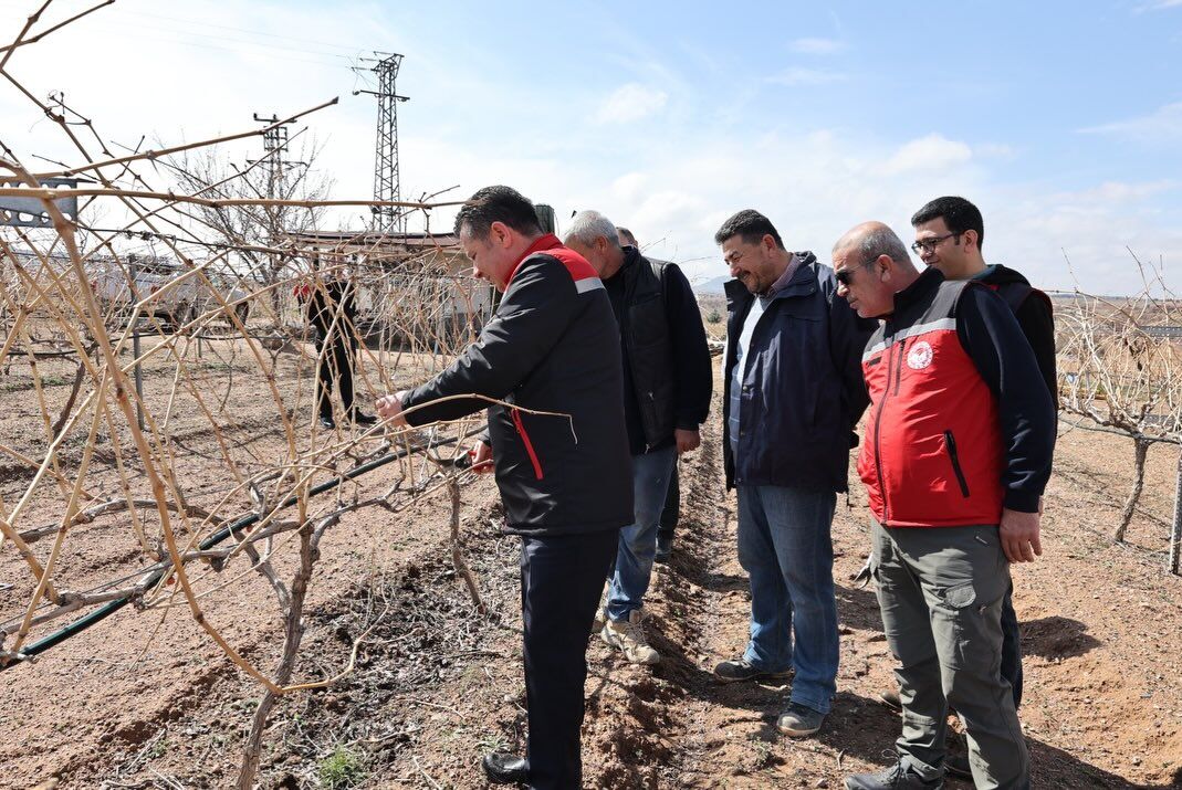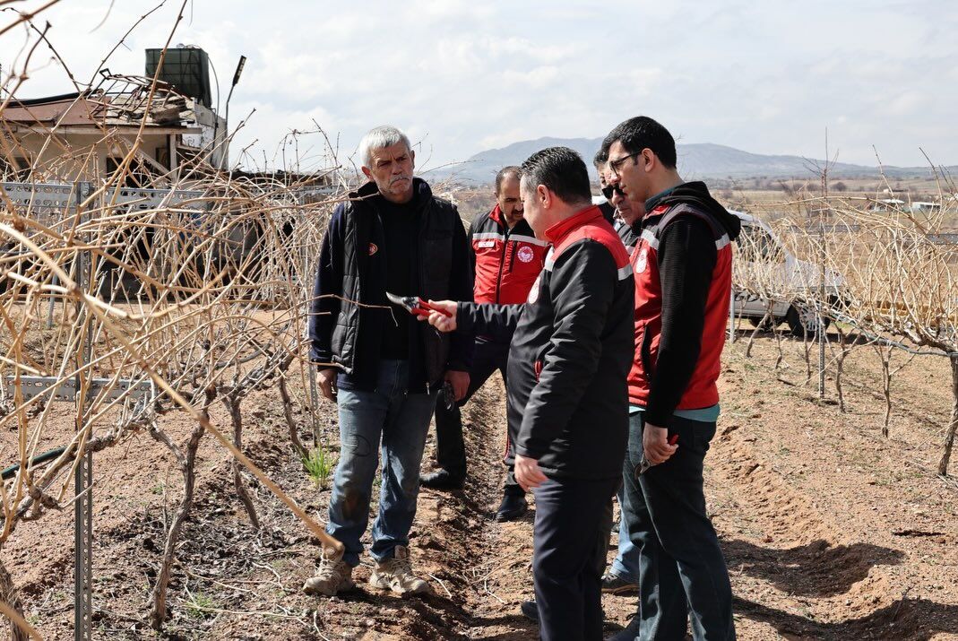 Nevşehir İl Tarım ve Orman Müdürü Özgür Memiş, Çat kasabasında yürütülen budama çalışmalarını yerinde inceleyerek üreticilerle bir araya geldi. Sahada yapılan çalışmaları değerlendiren Memiş, çiftçilerle sohbet ederek budama teknikleri hakkında görüş alışverişinde bulundu.