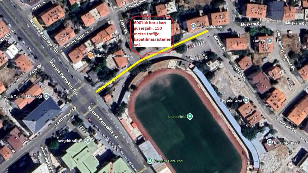 Nevşehir merkez Bahçelievler Mahallesi’nde yürütülecek altyapı çalışmaları nedeniyle geçici trafik düzenlemesine gidiliyor. Devlet Su İşleri (DSİ) 124. Şube Müdürlüğü tarafından yürütülen Nevşehir İçmesuyu İsale Hattı 1. Kısım Projesi kapsamında bazı cadde ve sokaklar belirli süreyle araç trafiğine kapatılacak.