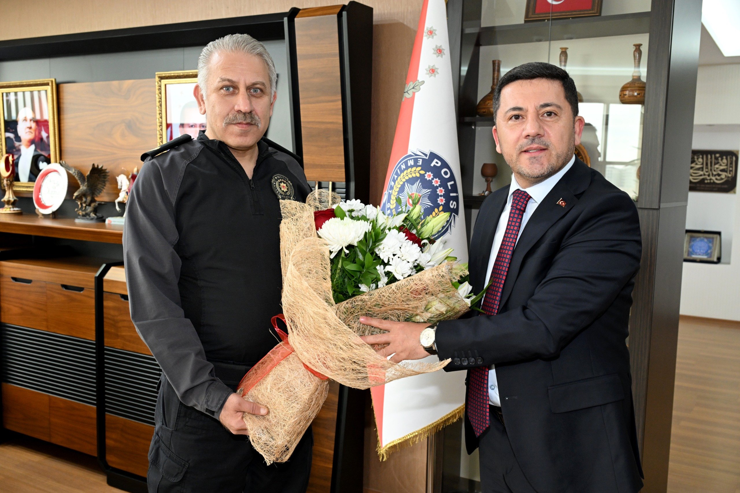 Nevşehir Belediye Başkanı Rasim ARI ve Belediye Başkan Yardımcısı İbrahim YÜZER, Türk Polis Teşkilatı’nın 181. kuruluş yıl dönümü ve 10 Nisan Polis Haftası münasebetiyle Nevşehir İl Emniyet Müdürü Serkan KARAMAN’ı makamında ziyaret etti.