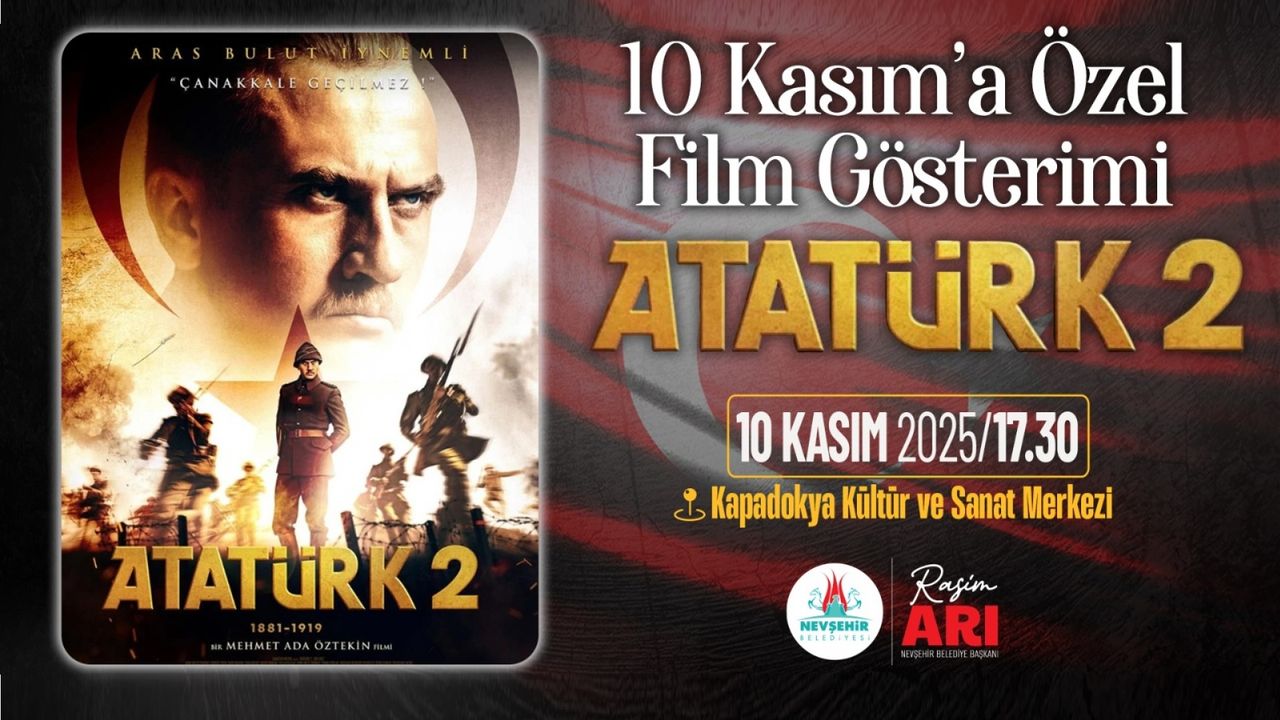 Nevşehir Belediyesi, Gazi Mustafa Kemal Atatürk’ün 87’inci ölüm yıldönümü kapsamında Nevşehirli vatandaşları “Atatürk 2” filmiyle buluşturacak.