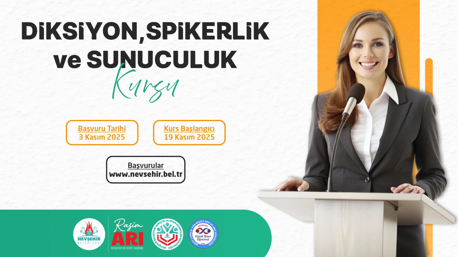 Diksiyon, Spikerlik ve Sunuculuk Kursu; 03 Kasım 2025 tarihinde alınmaya başlayacak olan başvurular sonrası kurs 19 Kasım 2025 tarihinde başlayıp 29 Ocak 2026 tarihinde tamamlanacak. Kurs Çarşamba, Perşembe ve Cuma günleri 13.00 – 16.00 saatleri arasında yapılacak.
