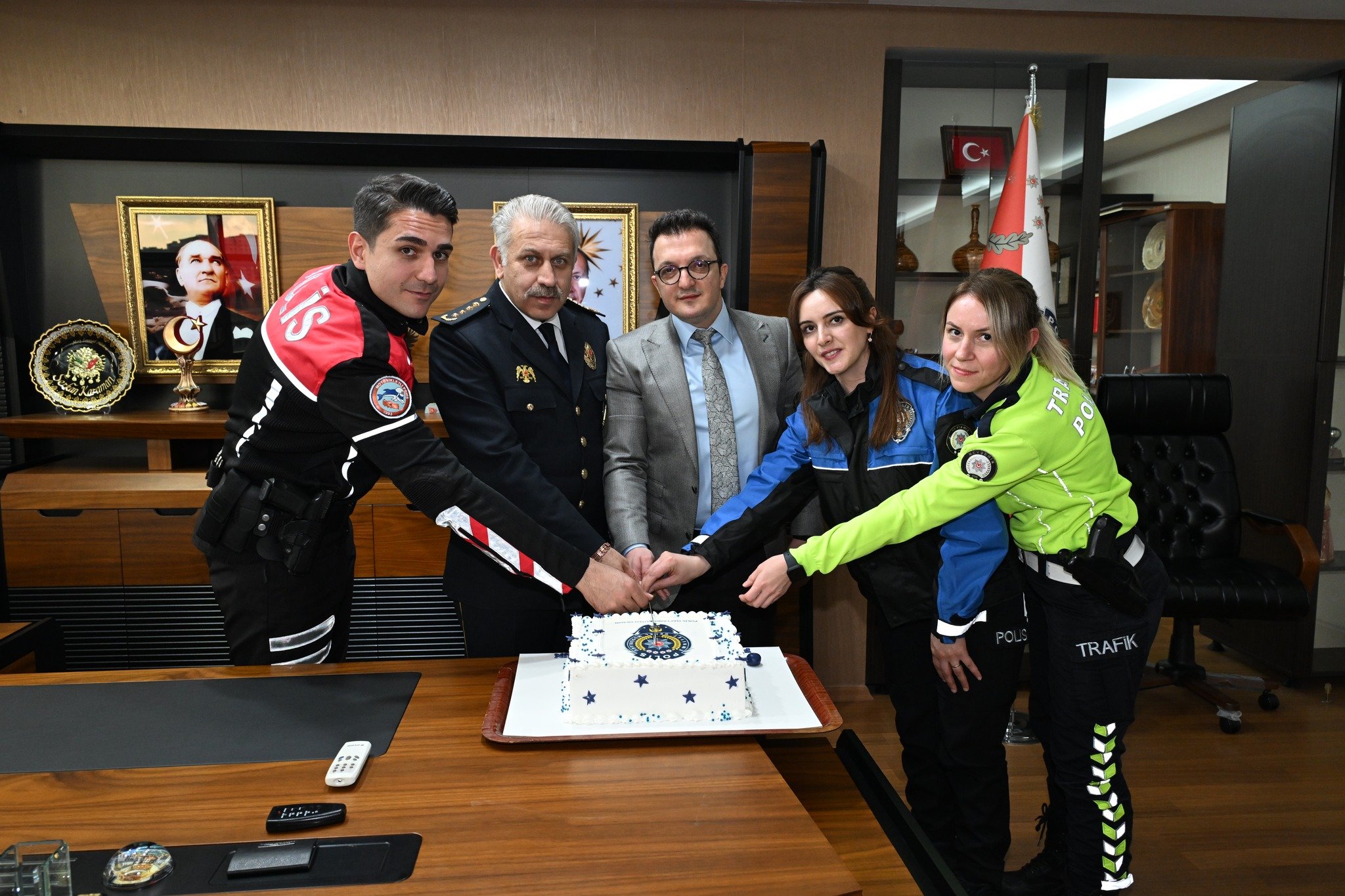 Nevşehir Cumhuriyet Başsavcısı Durmuş Ali Karakoca, Türk Polis Teşkilatının 181. kuruluş yıl dönümü ve 10 Nisan Polis Haftası dolayısıyla İl Emniyet Müdürü Serkan Karaman’ı makamında ziyaret etti.