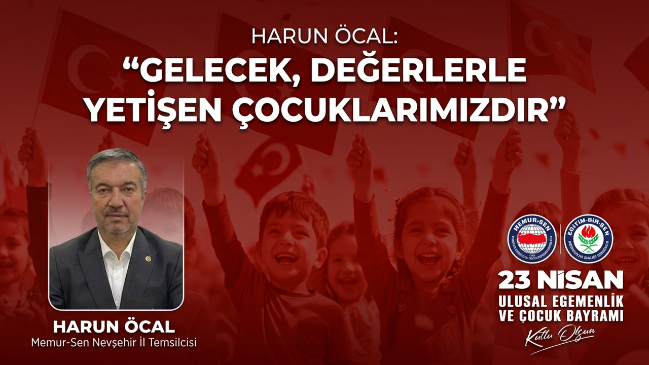Eğitim-Bir-Sen Nevşehir Şube Başkanı Harun Öcal, 23 Nisan Ulusal Egemenlik ve Çocuk Bayramı’nın 106. yıl dönümü dolayısıyla açıklamalarda bulundu.
