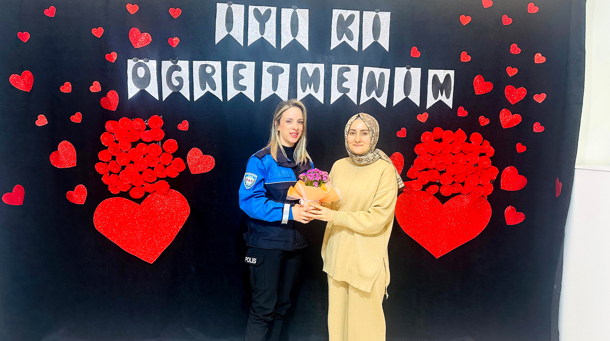 Ayrıca, geleceğe ışık tutan öğretmenler, görev yaptıkları okullarda ziyaret edilerek, kendilerine çiçek takdim edildi. Emniyet yetkilileri, öğretmenlerin özverili çalışmalarına teşekkür ederken, öğrencilerin yetişmesinde oynadıkları kritik rolü bir kez daha takdir etti.