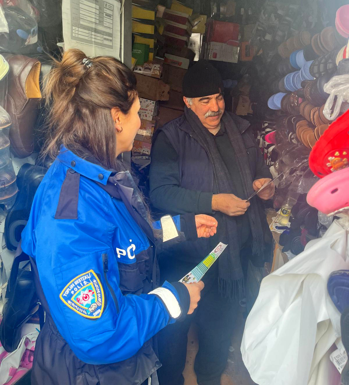 Toplum Destekli Polislik ekipleri tarafından hazırlanan E-Güvenlik broşürleri esnaflara dağıtılarak, güvenli internet kullanımı, şüpheli linklere tıklanmaması, bilinmeyen kişilerden gelen mesaj ve aramalara karşı dikkatli olunması gibi konularda farkındalık oluşturuldu.