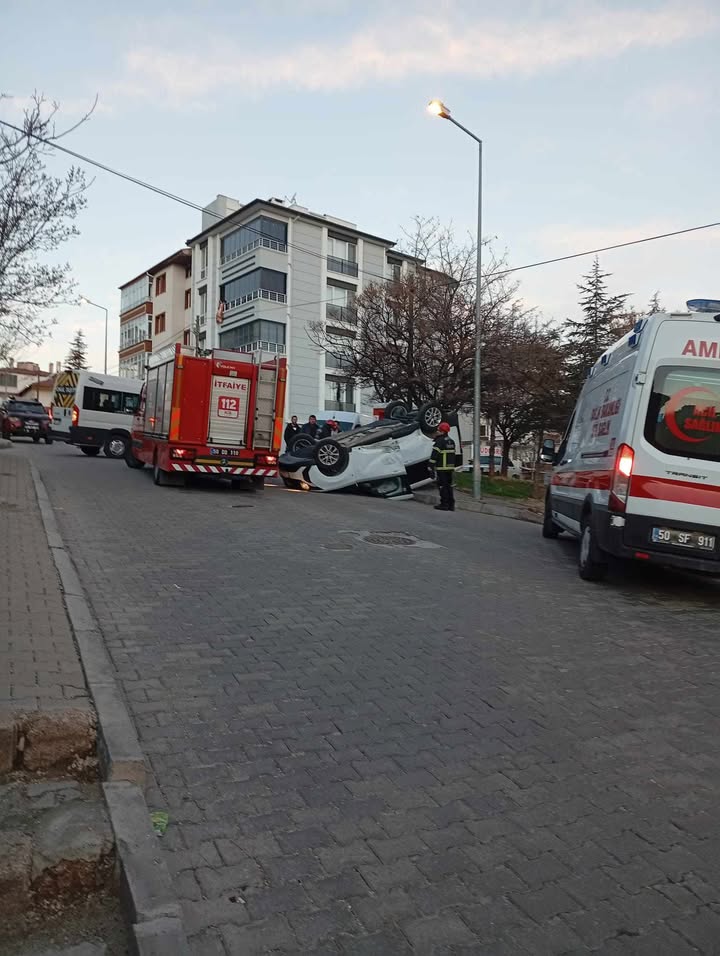 Nevşehir merkez Esentepe Mahallesi Güzelbahçe Sokak’ta okul servisi ile otomobilin karıştığı trafik kazası paniğe neden oldu. Çarpışmanın etkisiyle otomobil yol kenarına devrildi.