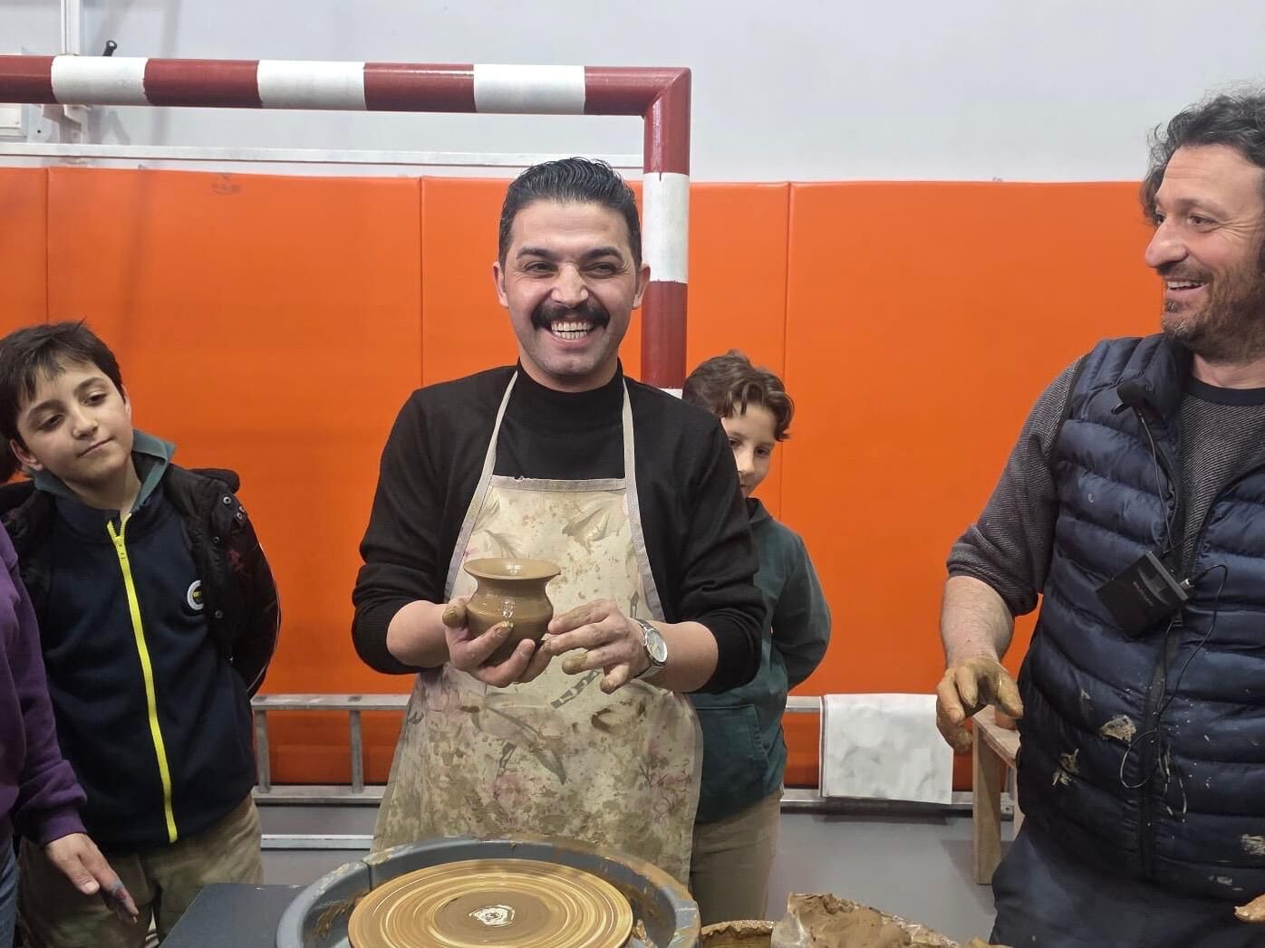 Etkinlik kapsamında Avanos’tan gelen usta çömlekçiler, öğrencilere çömlek yapımının inceliklerini anlattı. Öğrenciler, ustaların rehberliğinde çömlek yapımını deneyimleyerek bu köklü sanatın nasıl ortaya çıktığını uygulamalı olarak öğrendi.