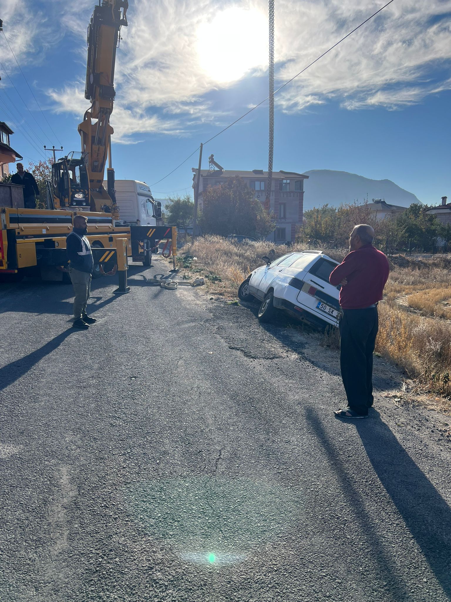 Kaza, sabah saat 08.30 sularında gerçekleşti. Yoldan çıkan otomobil, çevredeki vatandaşların ihbarı üzerine olay yerine gelen belediye ekipleri tarafından kurtarıldı.