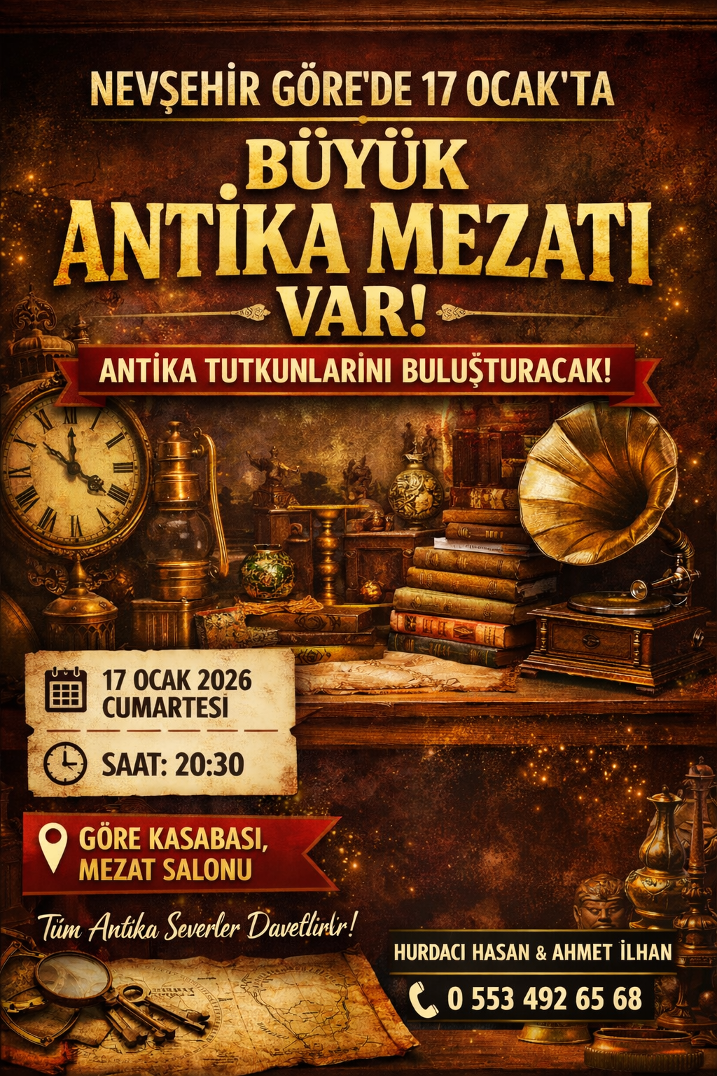 Antika Mezatı ile ilgili detaylı bilgi almak isteyenler, Hurdacı Hasan & Ahmet İlhan ile 0 553 492 65 68 numaralı telefondan iletişime geçebilecek.