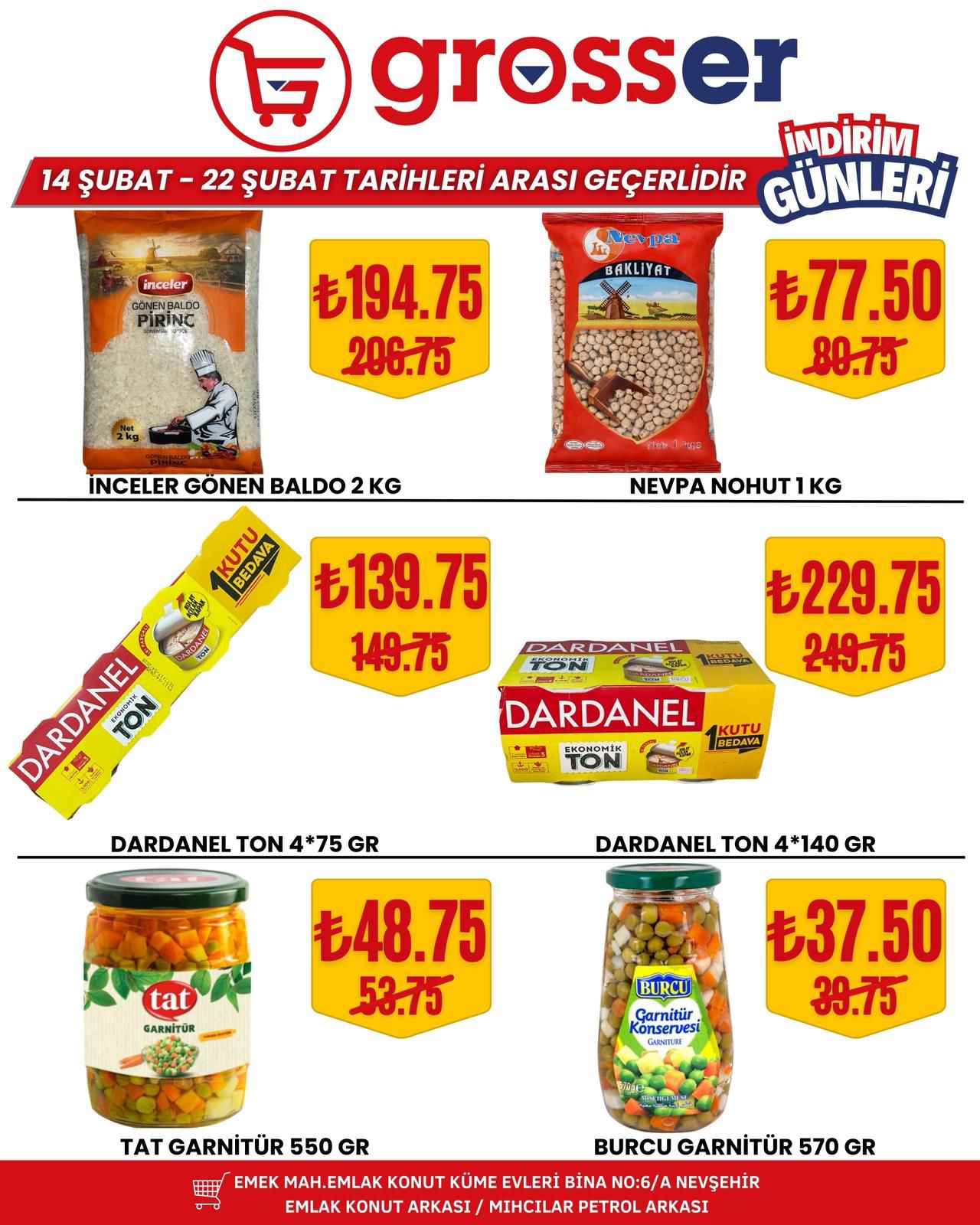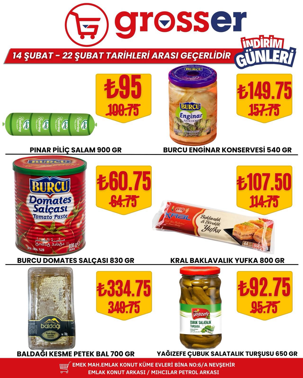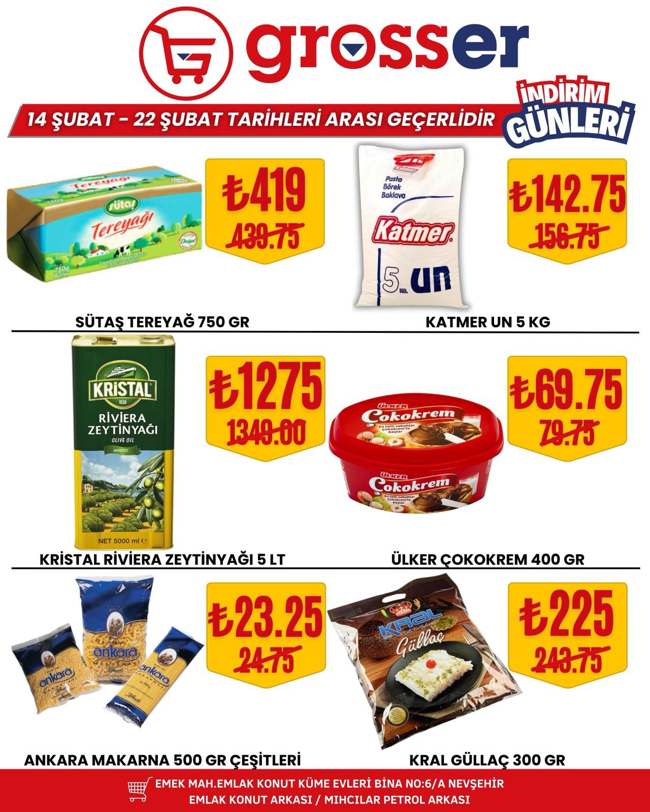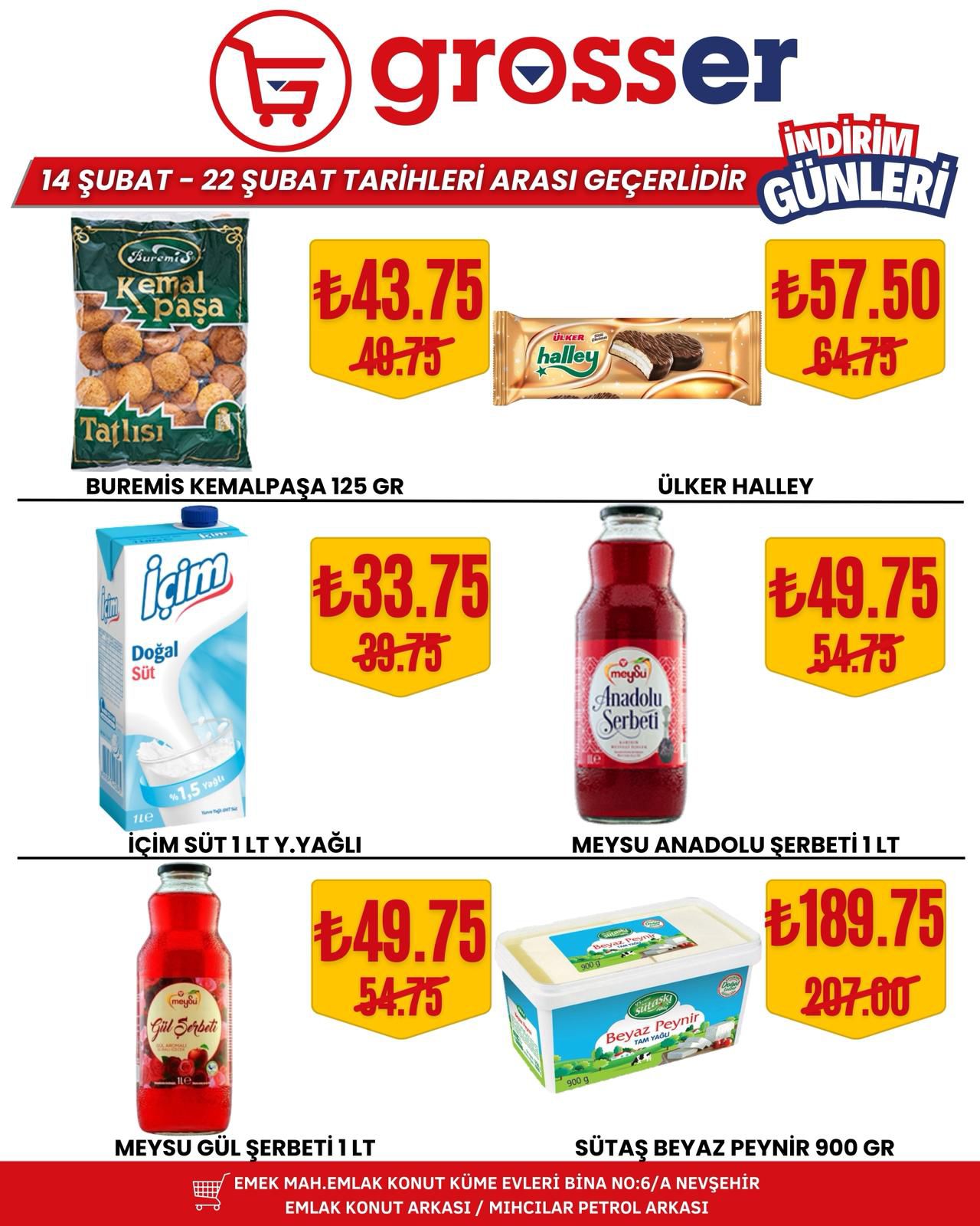 14 Şubat’ta başlayan ve 22 Şubat 2026 tarihine kadar devam edecek kampanya süresince birçok üründe avantajlı fiyatlar tüketicileri bekliyor. Yetkililer, bu özel indirim fırsatlarını kaçırmak istemeyen tüm Nevşehir halkını Grosser Market’e davet etti.