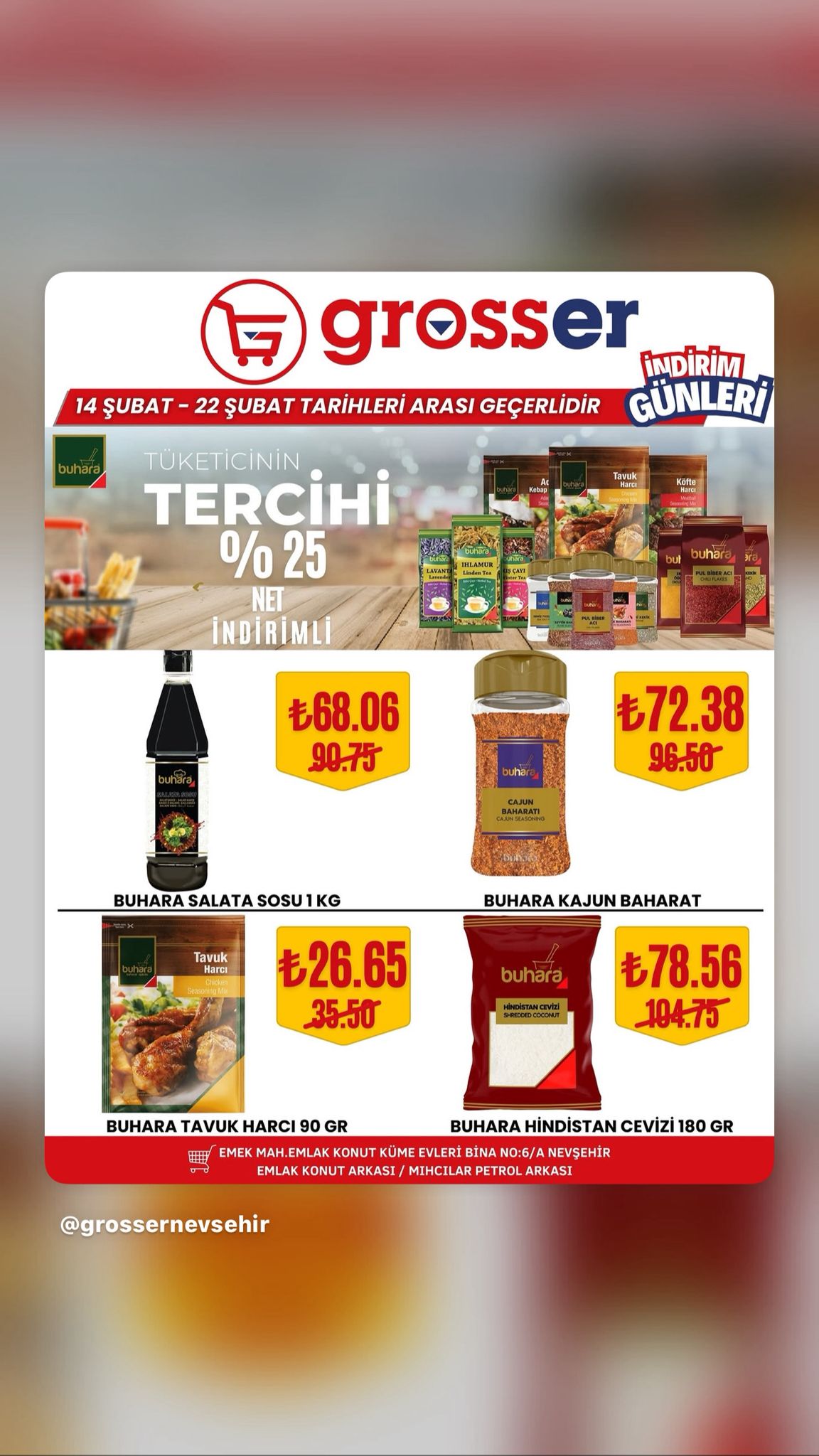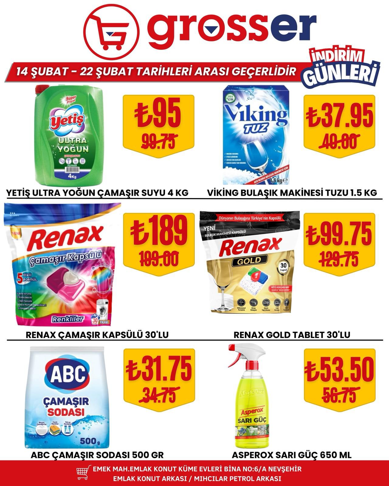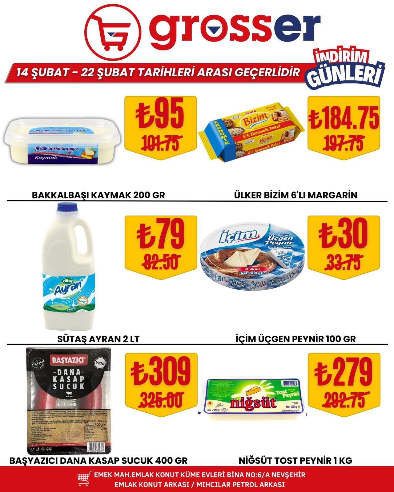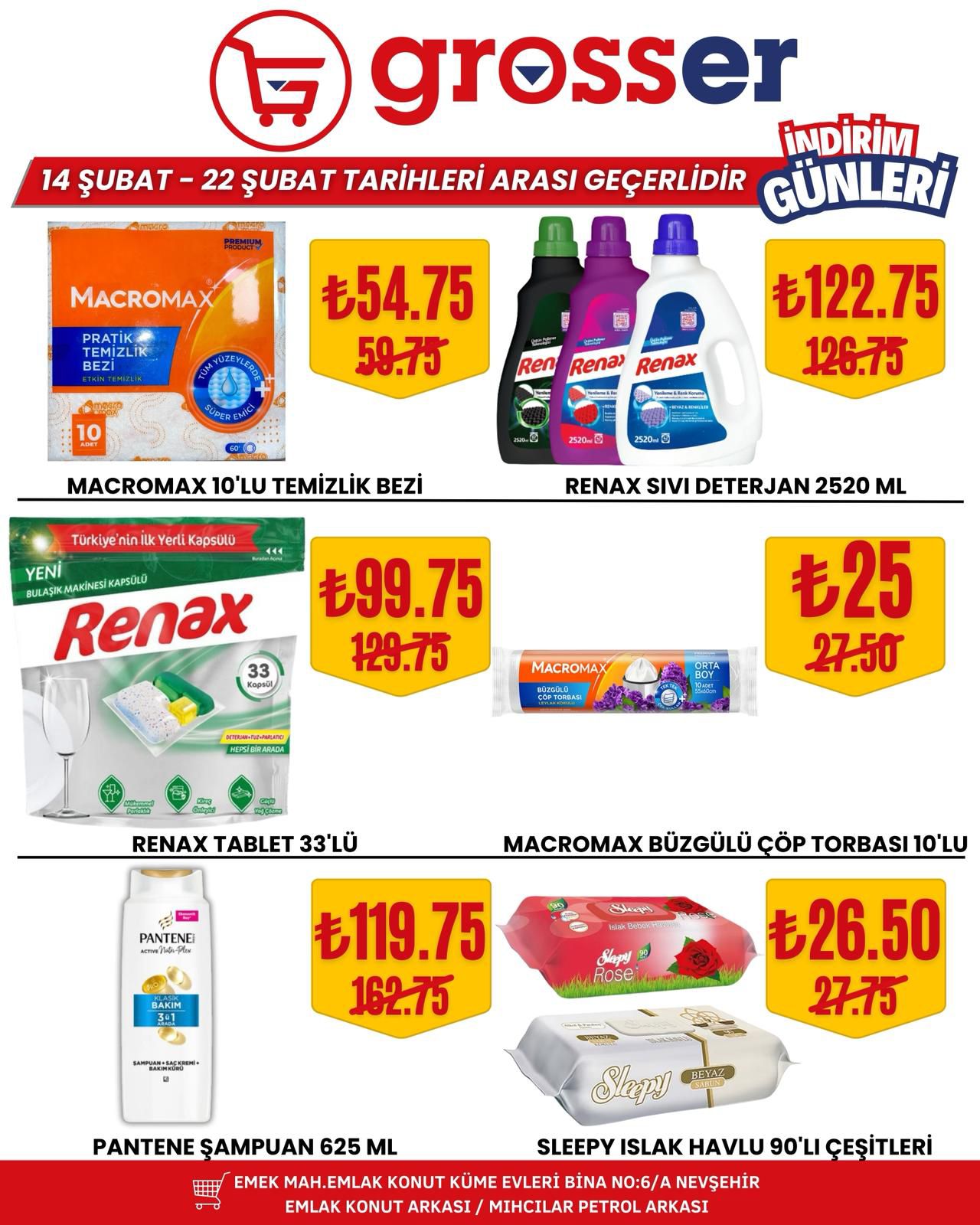14 Şubat’ta başlayan ve 22 Şubat 2026 tarihine kadar devam edecek kampanya süresince birçok üründe avantajlı fiyatlar tüketicileri bekliyor. Yetkililer, bu özel indirim fırsatlarını kaçırmak istemeyen tüm Nevşehir halkını Grosser Market’e davet etti.