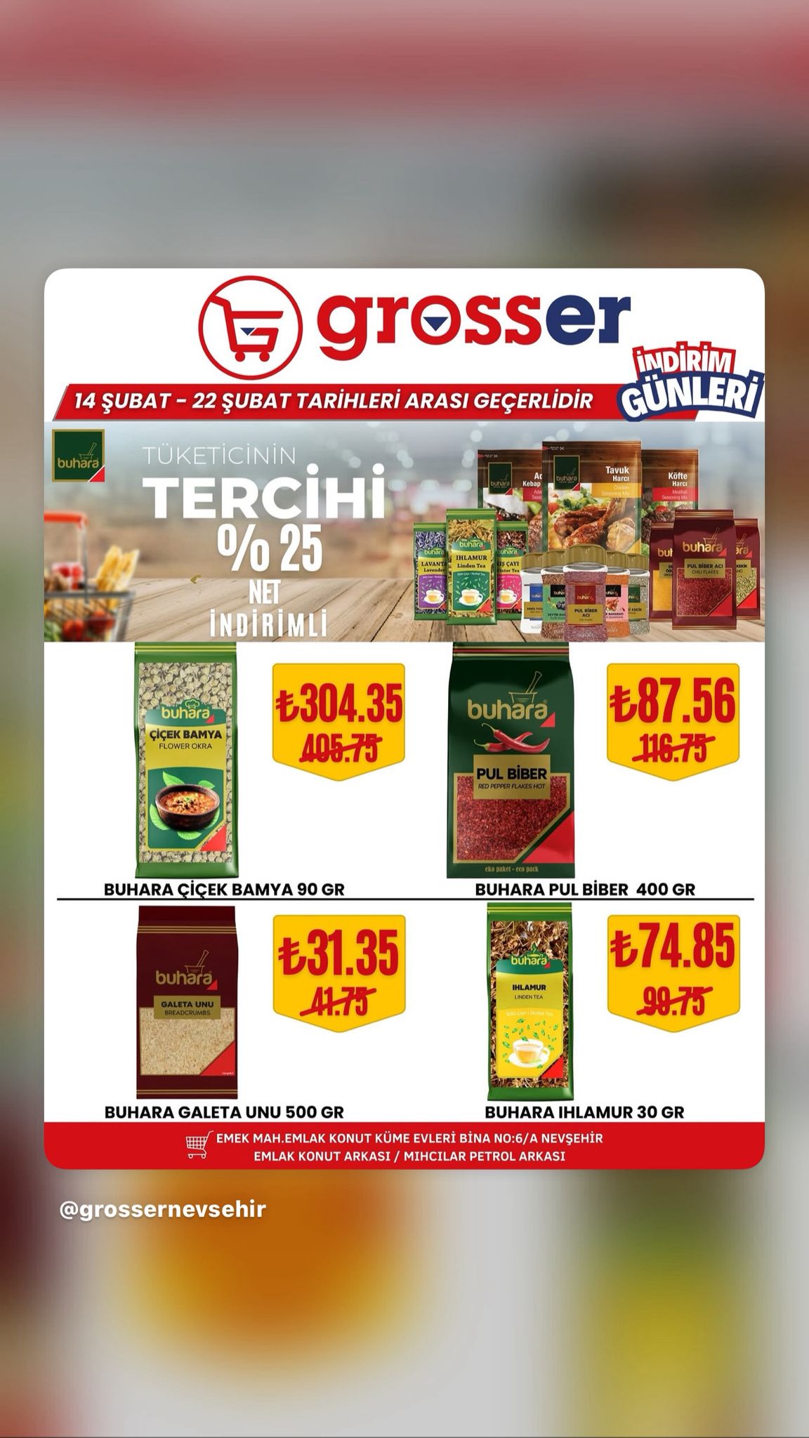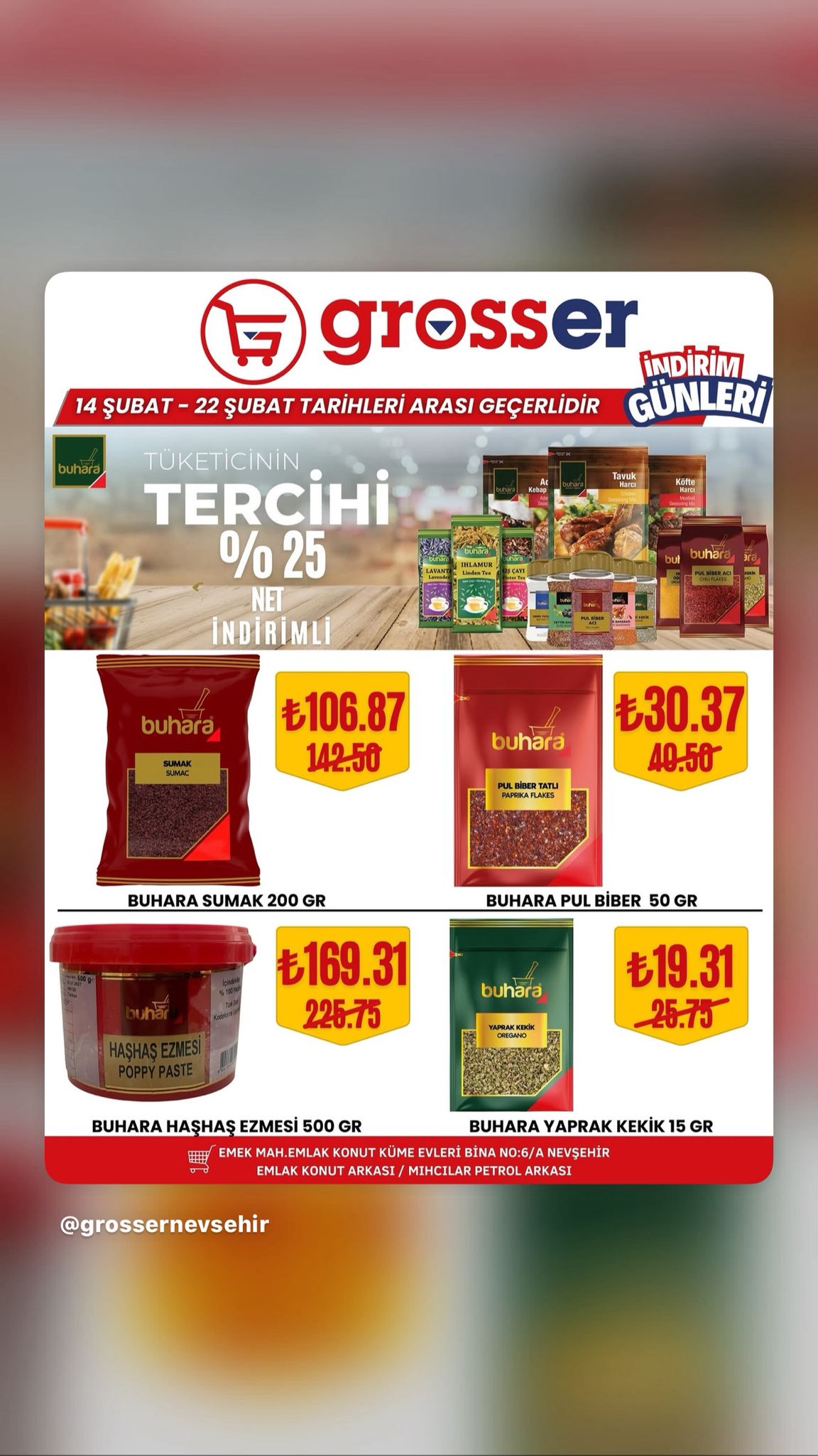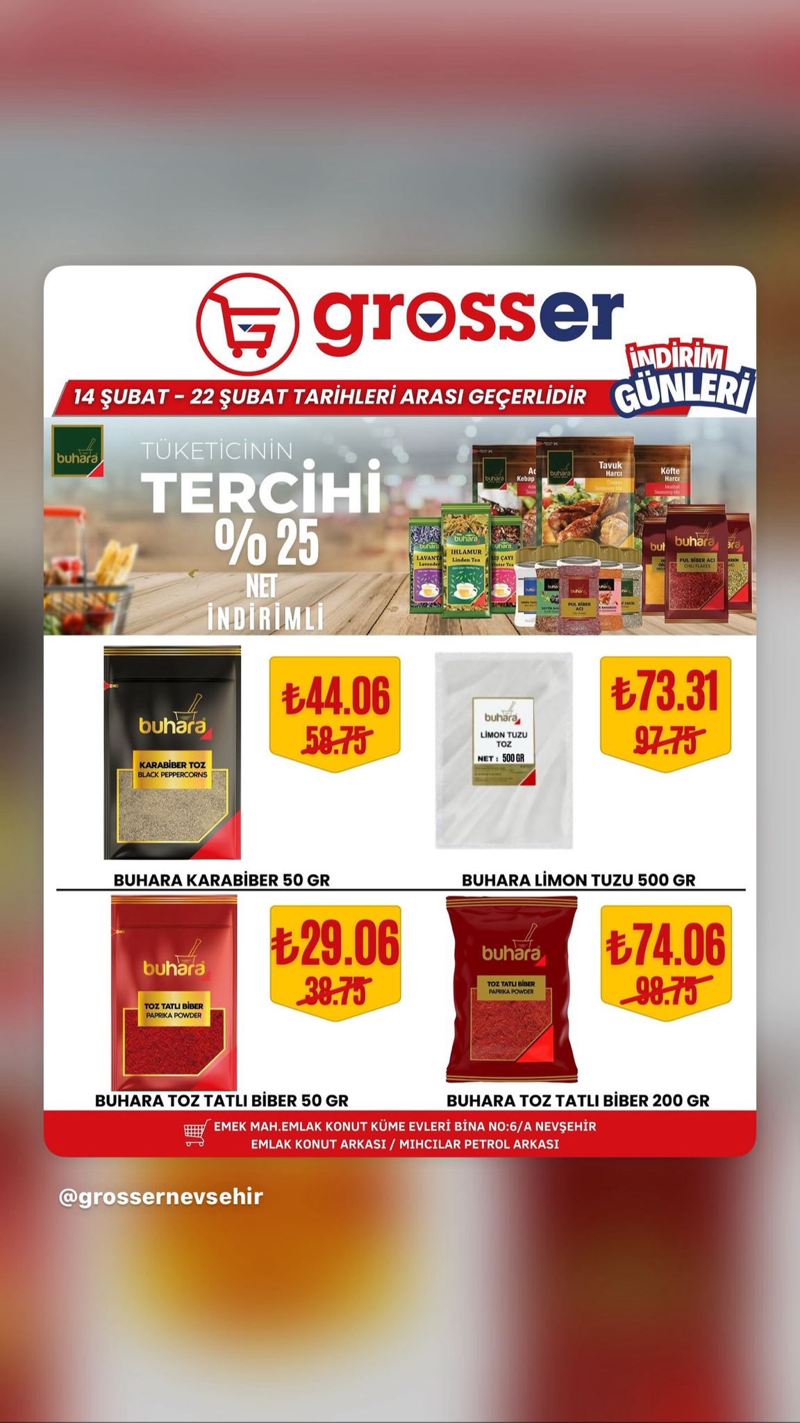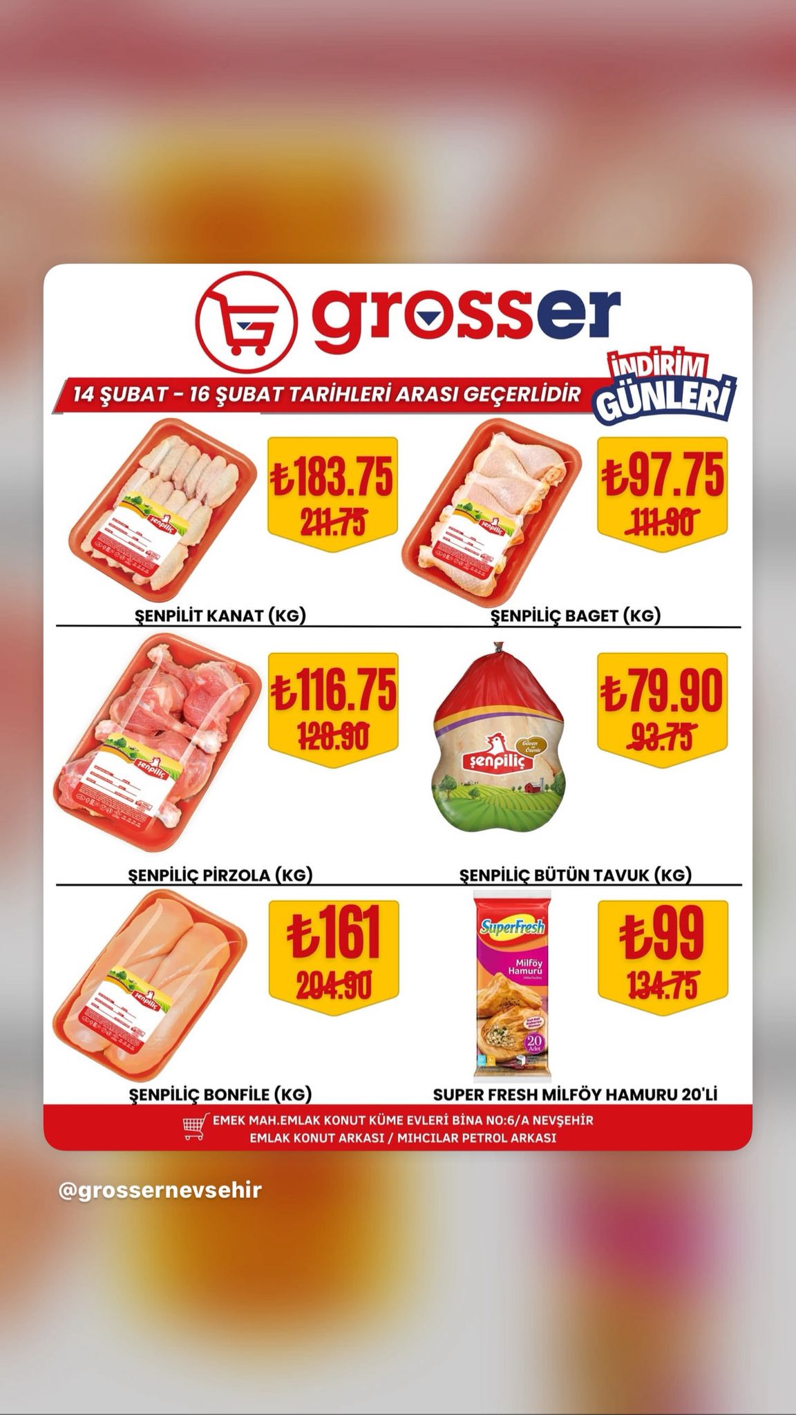 14 Şubat’ta başlayan ve 22 Şubat 2026 tarihine kadar devam edecek kampanya süresince birçok üründe avantajlı fiyatlar tüketicileri bekliyor. Yetkililer, bu özel indirim fırsatlarını kaçırmak istemeyen tüm Nevşehir halkını Grosser Market’e davet etti.