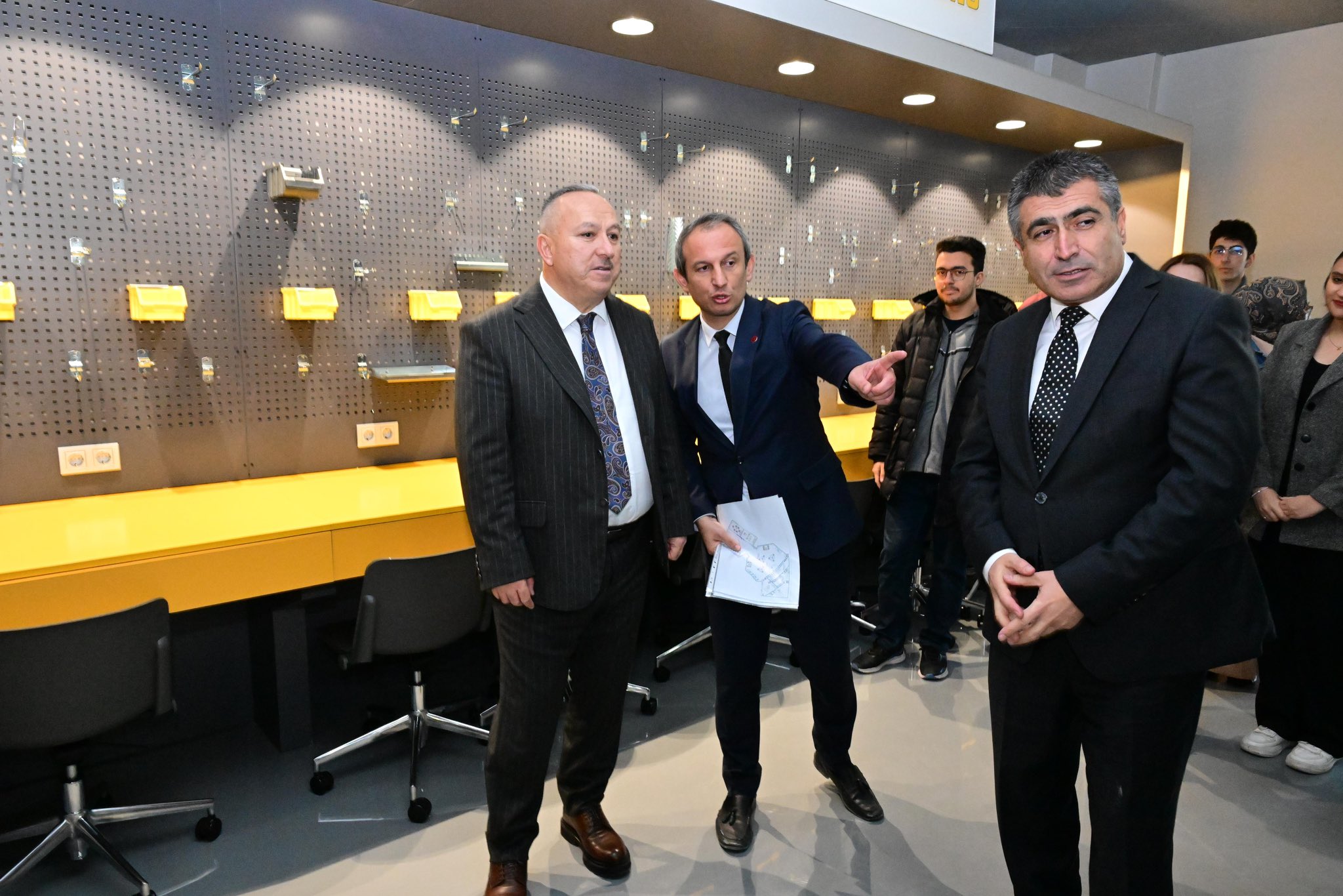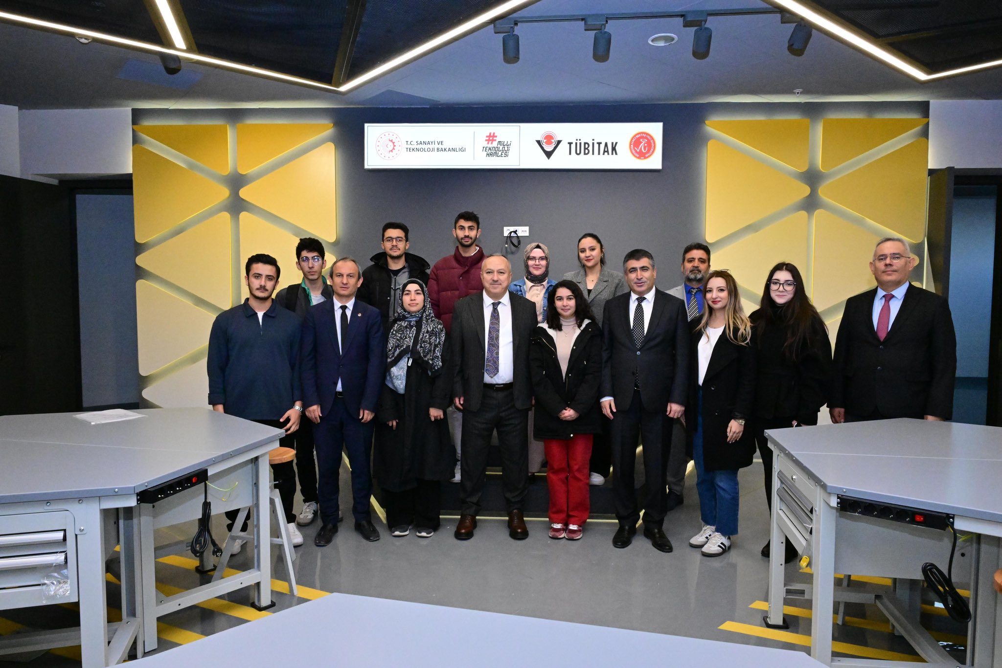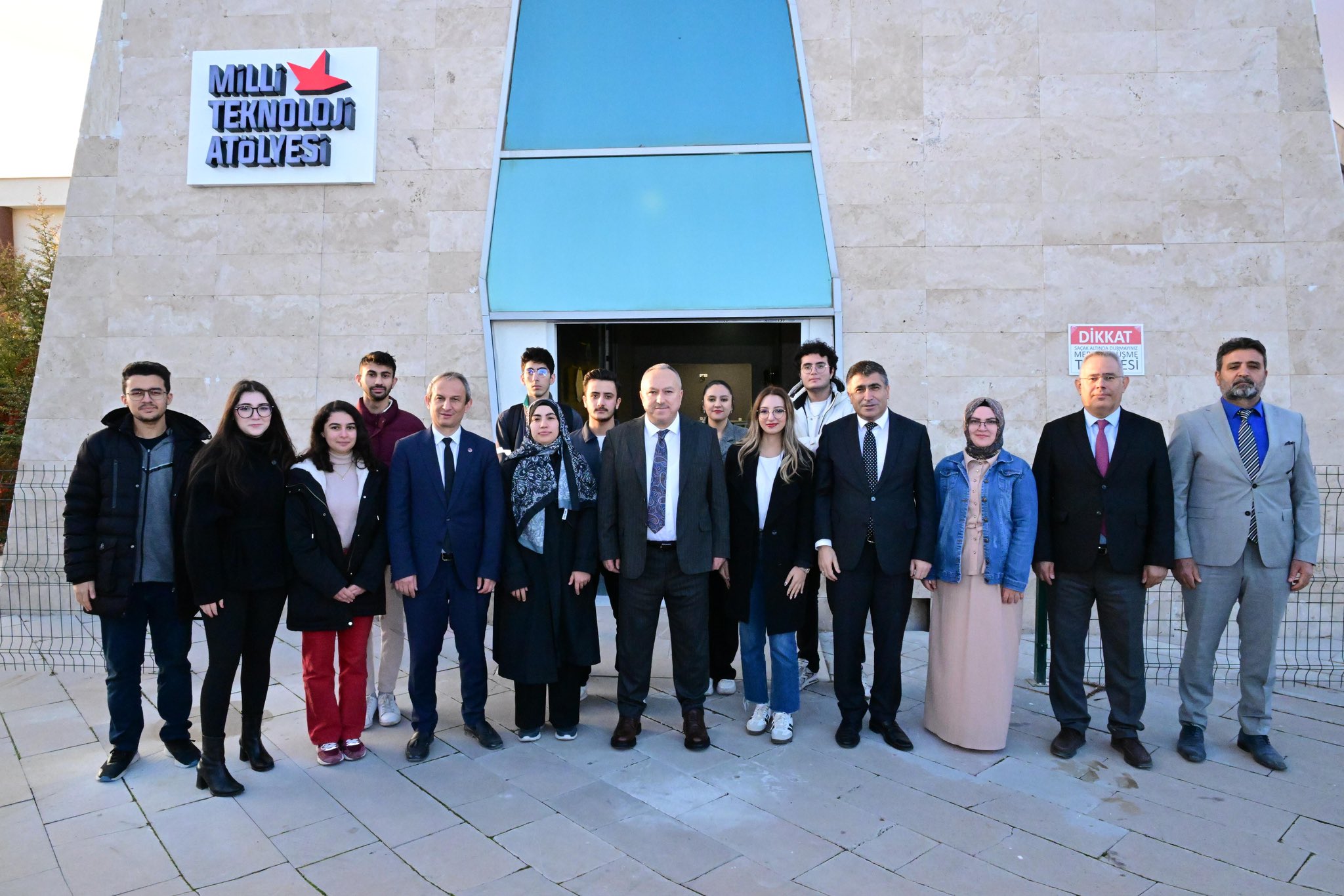 Vali Ali Fidan’a Millî Teknoloji Atölyesi’nin teknik altyapısı ve eğitim kapasitesine ilişkin bilgi veren Prof. Dr. Bayram Deviren; robotik kodlama, yapay zekâ, dijital tasarım ve veri analitiği odaklı uygulamalı çalışma alanlarının öğrenciler için güçlü bir öğrenme ortamı oluşturacağını aktardı. Ayrıca TEKNOFEST dâhil ulusal ve uluslararası teknoloji yarışmalarına hazırlanan ekiplerin burada ihtiyaç duyduğu teknik donanıma, eğitim desteğine ve danışmanlığa erişebileceğini belirtti.