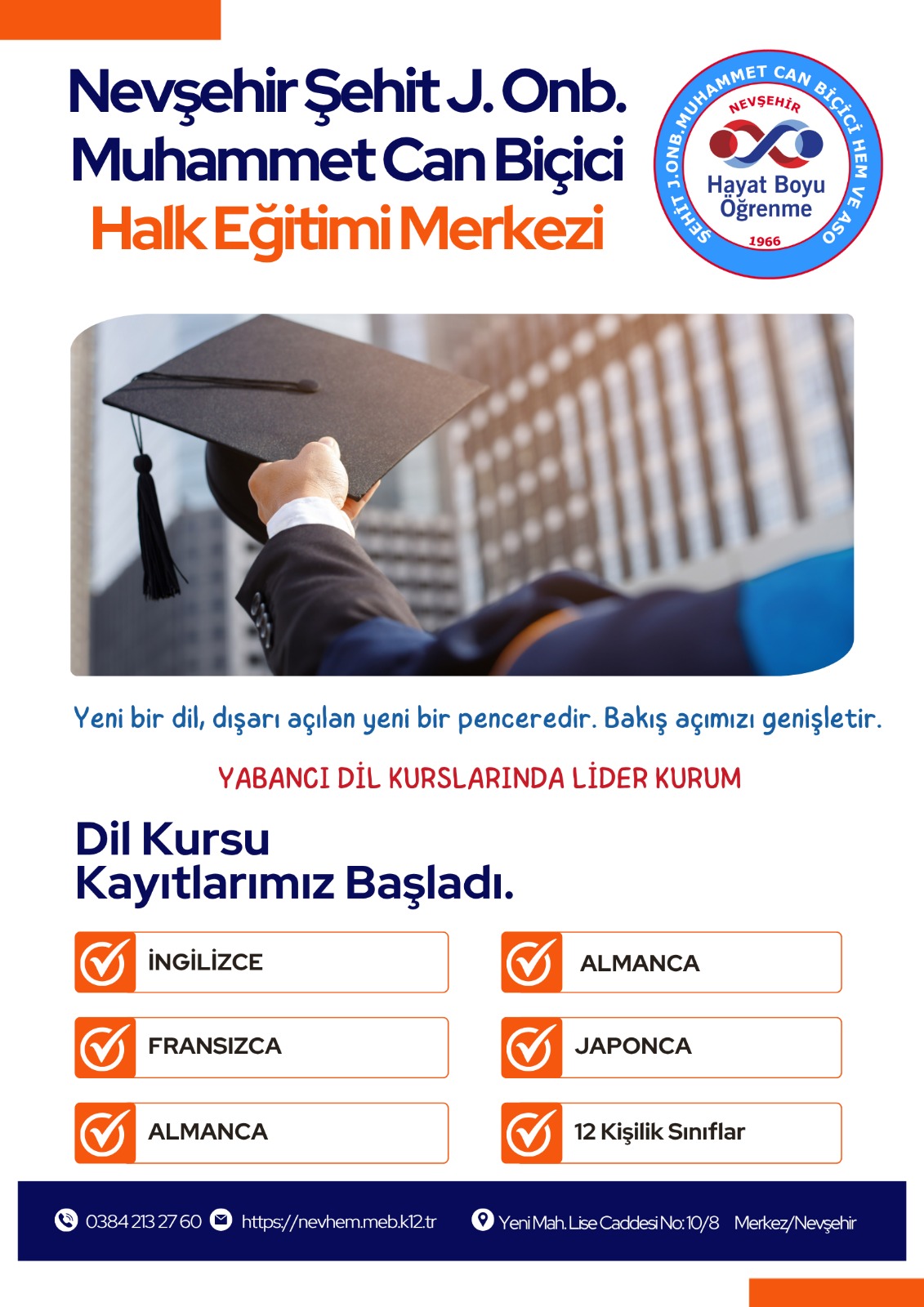 Nevşehir Şehit J. Onb. Muhammet Can Biçici Halk Eğitimi Merkezi, yeni dönem kurslarını açarak yaygın eğitim faaliyetlerine hızlı bir giriş yaptı. Yabancı dillerden geleneksel Türk el sanatlarına, sektörel meslek kurslarından kişisel gelişim programlarına kadar geniş bir yelpazede eğitimler veriliyor.