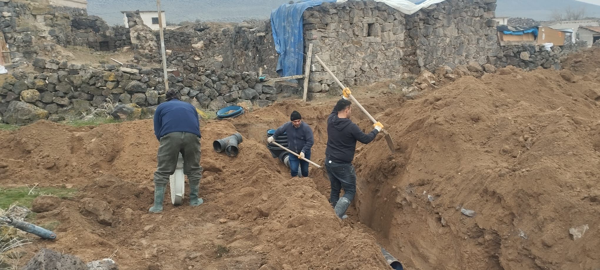 Eğrikuyu Köyü: 3 adet içme suyu şebeke arızası tamir edildi; 1 adet 63’lük vana takıldı. Tıkalı kanalizasyon şebekesi arızası giderildi, 220 metre bazalt kayalı bölge kırımı yapıldı, kanal temizliği gerçekleştirildi ve 255 metre ilave hat döşendi.