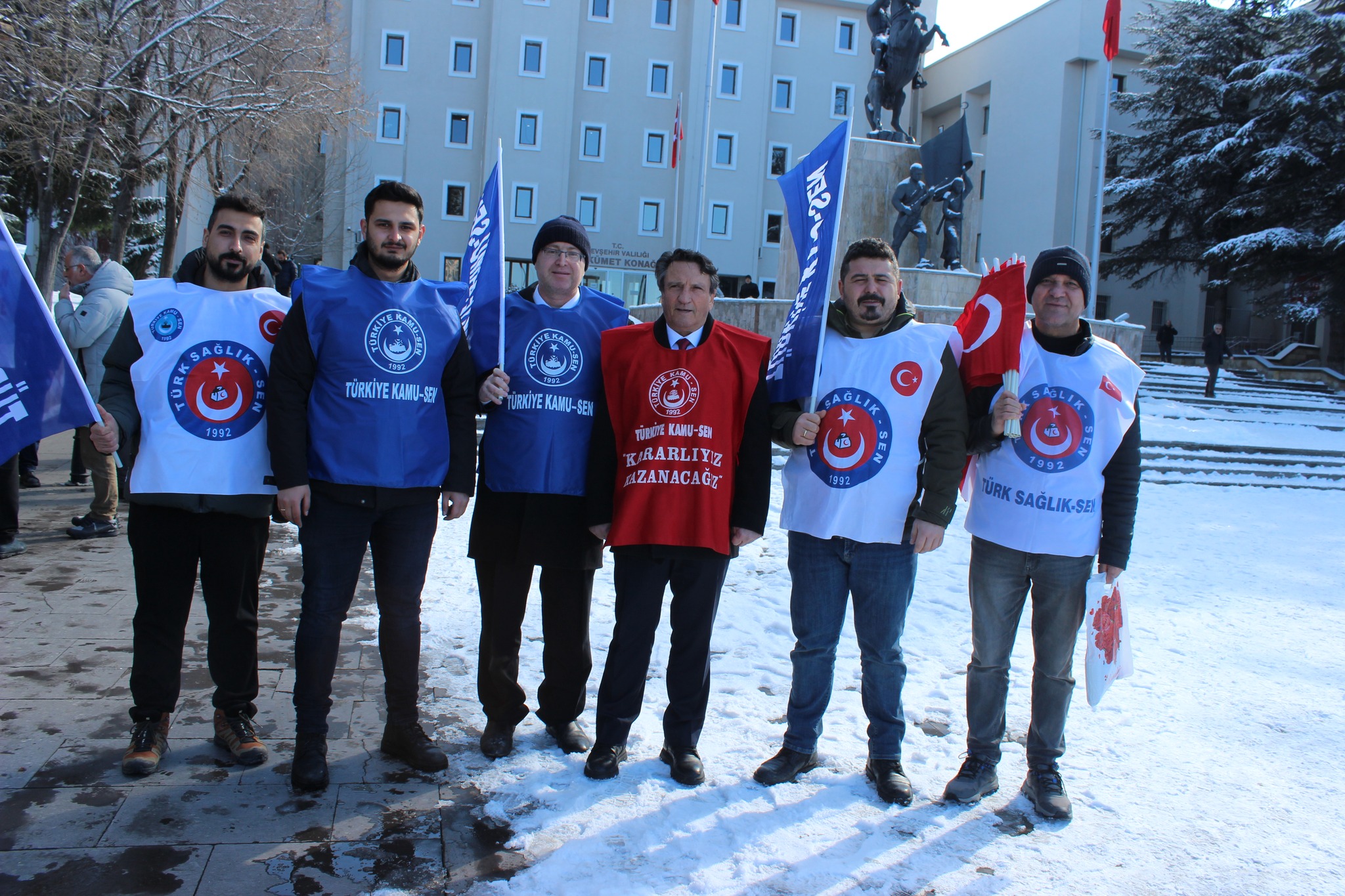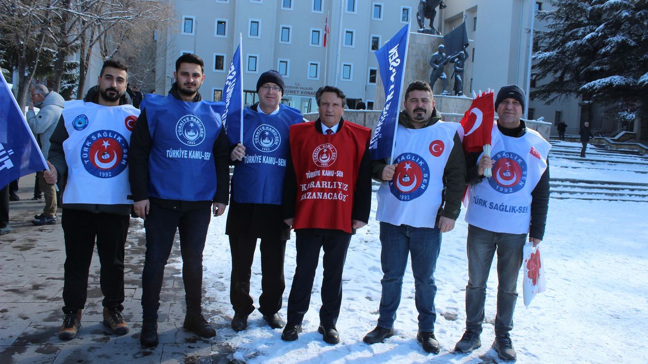 Türkiye Kamu-Sen Nevşehir İl Temsilciliği öncülüğünde, kamu çalışanları ve emeklilerin yaşadığı ekonomik sorunlara dikkat çekmek amacıyla Nevşehir Valiliği binası önünde “Ücrette Hakkaniyet, Vergide Adalet, İstihdamda Güvence” sloganıyla basın açıklaması yapıldı.