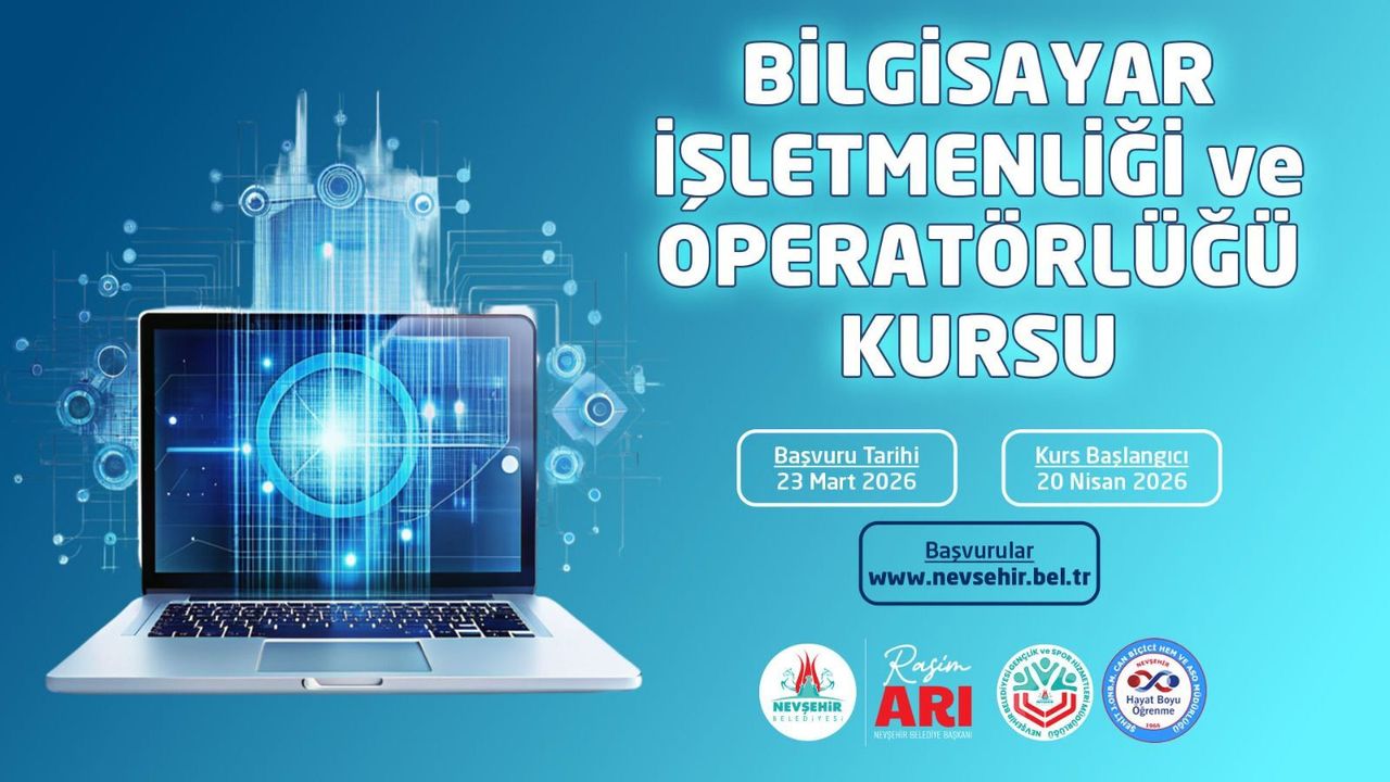 Bilgisayar İşletmenliği ve Operatörlüğü Kursu; 23 Mart 2026 Pazartesi gününden itibaren alınmaya başlanan başvurular sonrası kurs 20 Nisan 2026 tarihinde başlayıp 22 Haziran 2026 tarihinde tamamlanacak. Kurs Pazartesi, Salı, Çarşamba ve Perşembe günleri 16.00 - 20.00 saatleri arasında yapılacak.