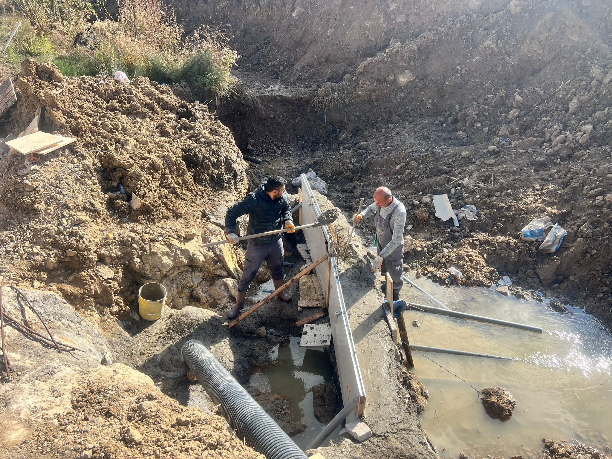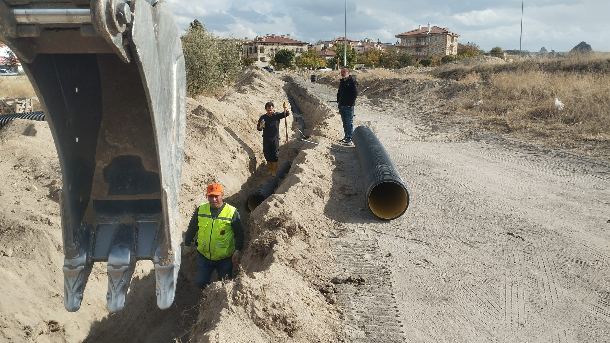 Çavuşin Köyü: Göremeden gelen 400’lük kanal hattının 120 metrelik anayol geçiş kısmı döşendi; pompa hattı arızası giderildi.