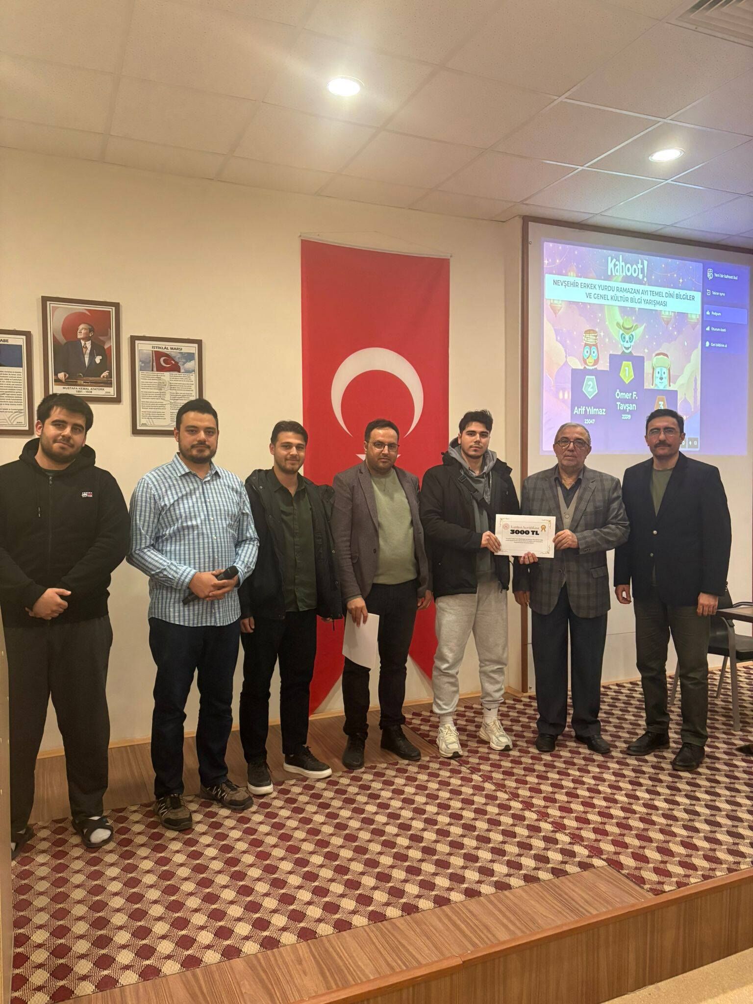 Programın sonunda İl Müftüsü Kazım Güzel, organizasyona katkı sağlayan Nevşehir KYK Erkek Öğrenci Yurdu Müdürü Ahmet Us, Diyanet Gençlik Koordinatörü Ali Bilgili ve Nevşehir Erkek Öğrenci Yurdu Manevi Danışmanı M. Enes Balkan’a teşekkür etti.