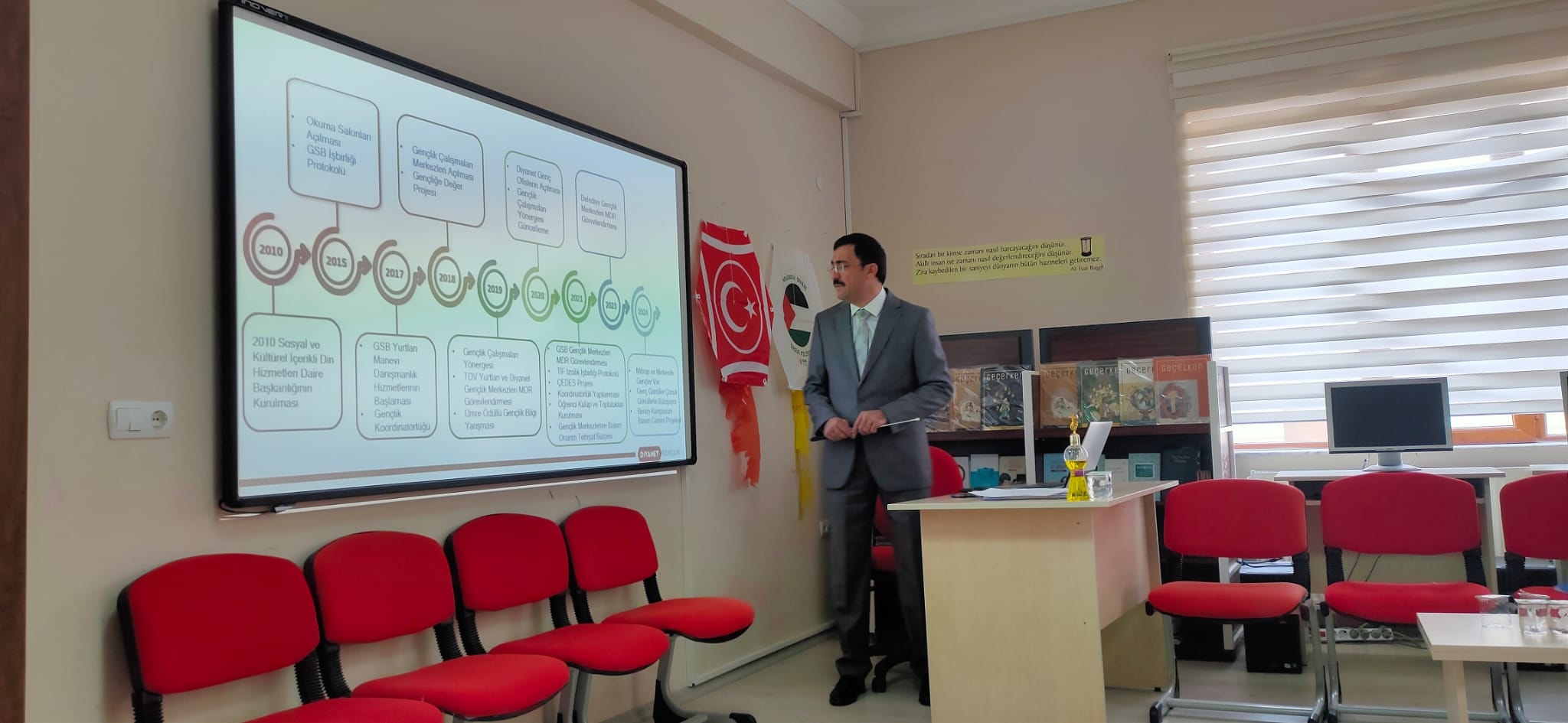Toplantının açılış bölümünde İl Gençlik Teşkilatı tanıtıldı ve yapılan faaliyetler hakkında katılımcılara detaylı bilgi verildi. Teşkilatın yapısı, görev alanları ve gençlerle yürütülen projeler sunumlarla paylaşıldı.