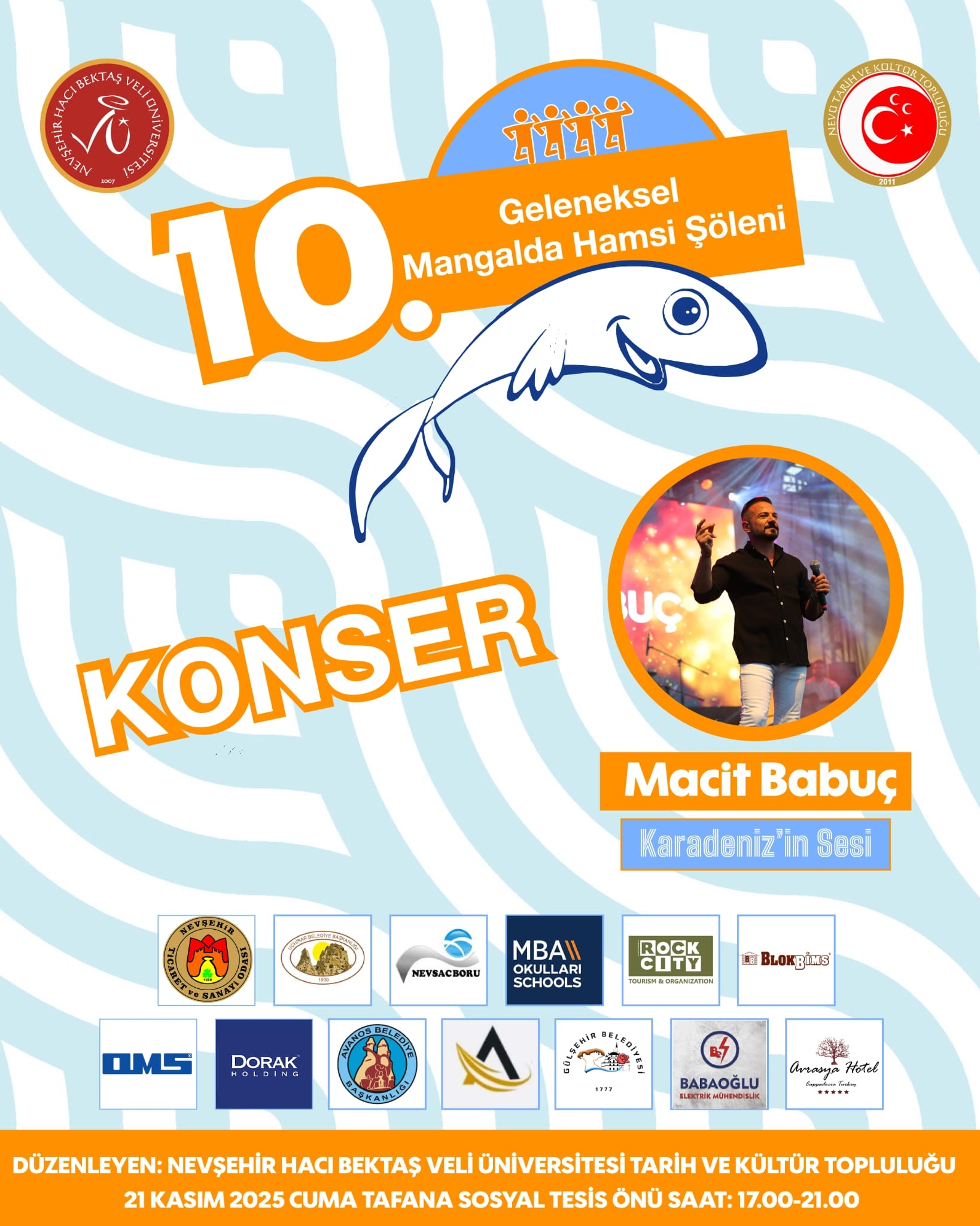 Nevşehir Hacı Bektaş Veli Üniversitesi (NEVÜ), öğrenciler arasında kültürel ve sosyal yaşamı güçlendiren etkinliklerine bir yenisini ekliyor. Üniversitenin Tarih ve Kültür Topluluğu, bu yıl 10. Geleneksel Mangalda Hamsi Şölenini 21 Kasım 2025 Cuma günü, saat 17.00-21.00 arasında Tafana Sosyal Tesis önünde düzenleyecek.