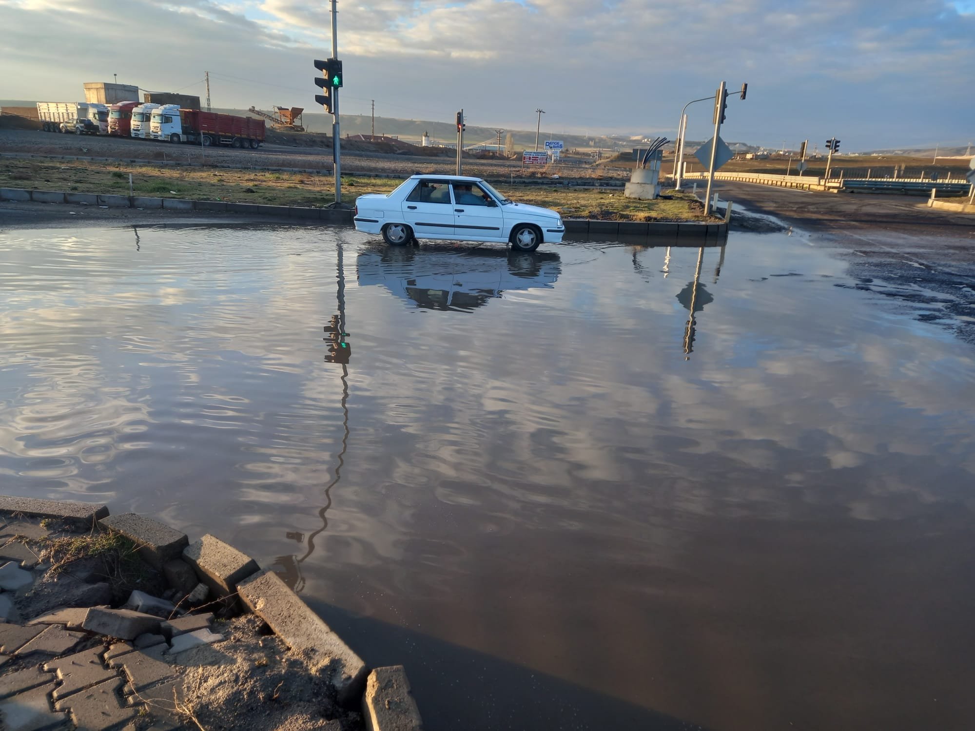 Yağışın etkisiyle kısa sürede büyüyen su birikintileri nedeniyle bazı araçlar ilerlemekte güçlük çekerken, sürücüler kazalara davetiye çıkaran duruma tepki gösterdi. Özellikle kavşak noktasında biriken suyun derinliğinin artması, hem trafik akışını yavaşlattı hem de araç sürücüleri için risk oluşturdu. Özellikle sabah ve akşam saatlerinde hava sıcaklığının düşmesiyle de buzlanma bu riski daha da artırıyor.