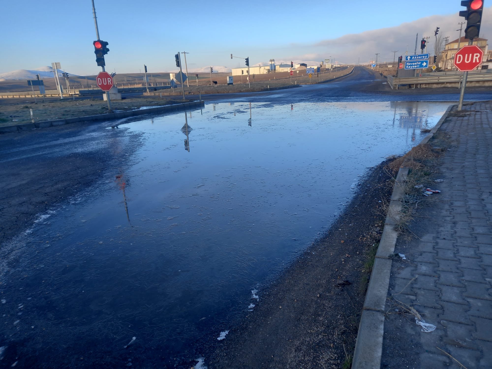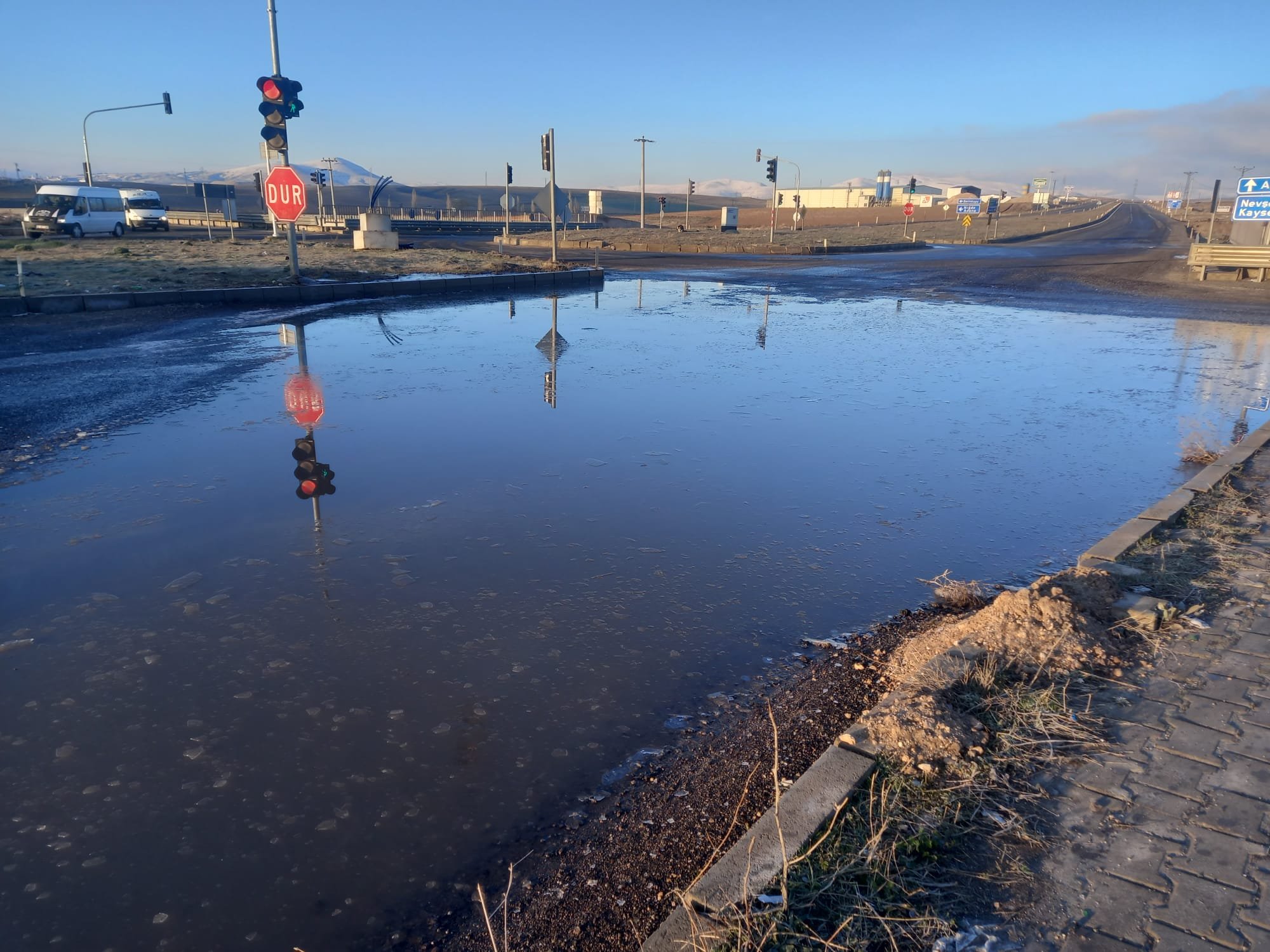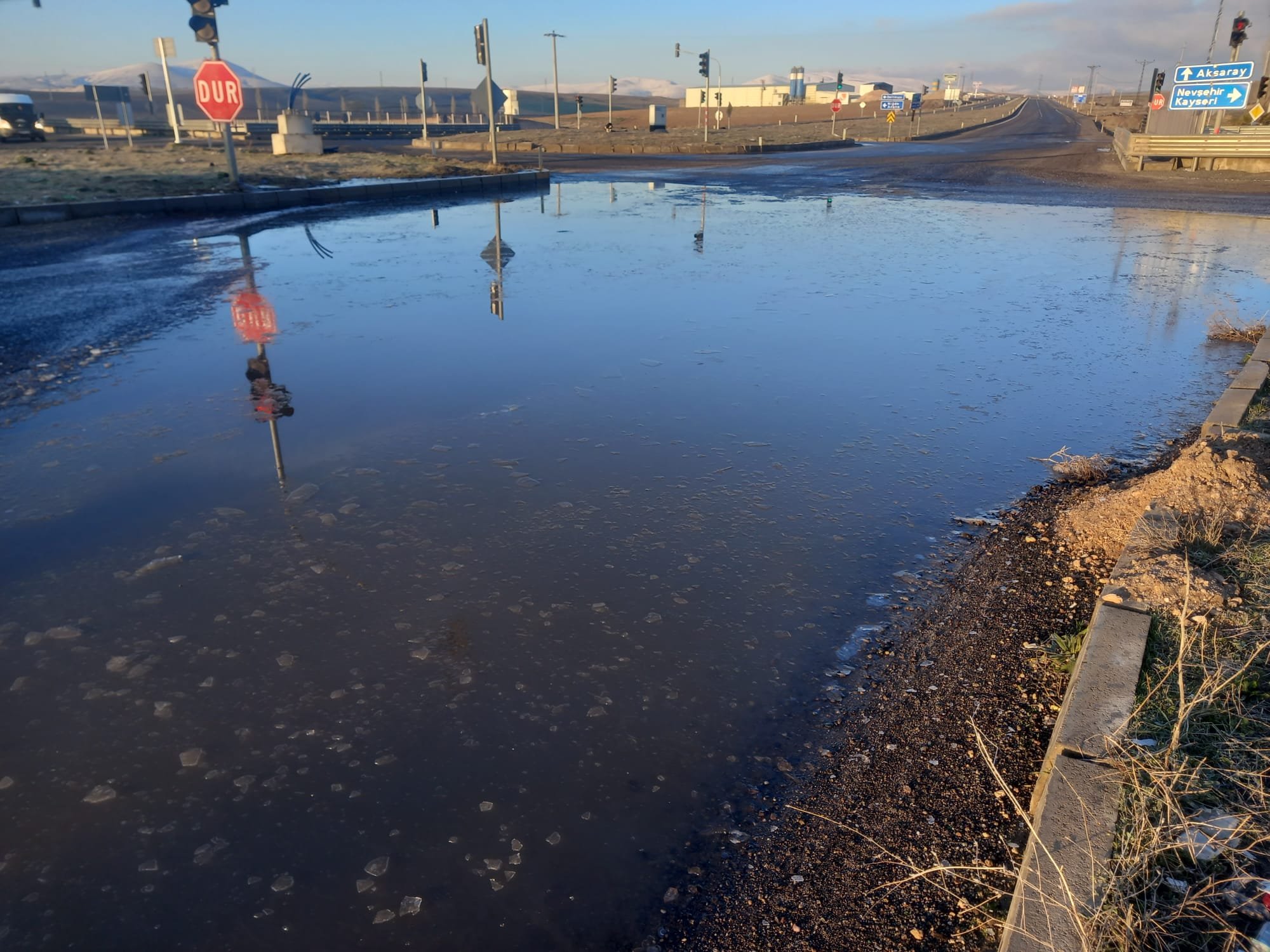 Nevşehir Güney Çevre Yolu ile Nevşehir–Niğde yolunu birbirine bağlayan noktada oluşan su birikintileri, sürücülere zor anlar yaşattı.