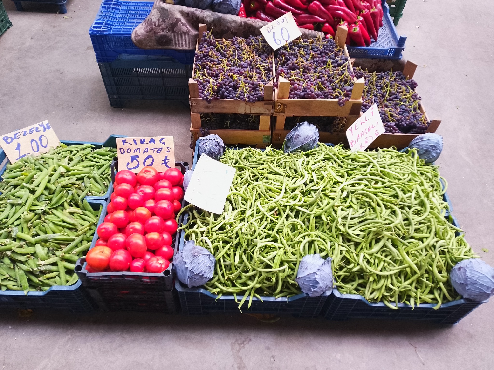 Ayhan Köyünden patlıcan, biber, Bahçeli’den taze bezelye ve fasulye, Karaburna'dan üzüm, Yeşilli’den ise kurutmalık sebzeler pazardaki renkli çeşitliliği oluşturuyor.