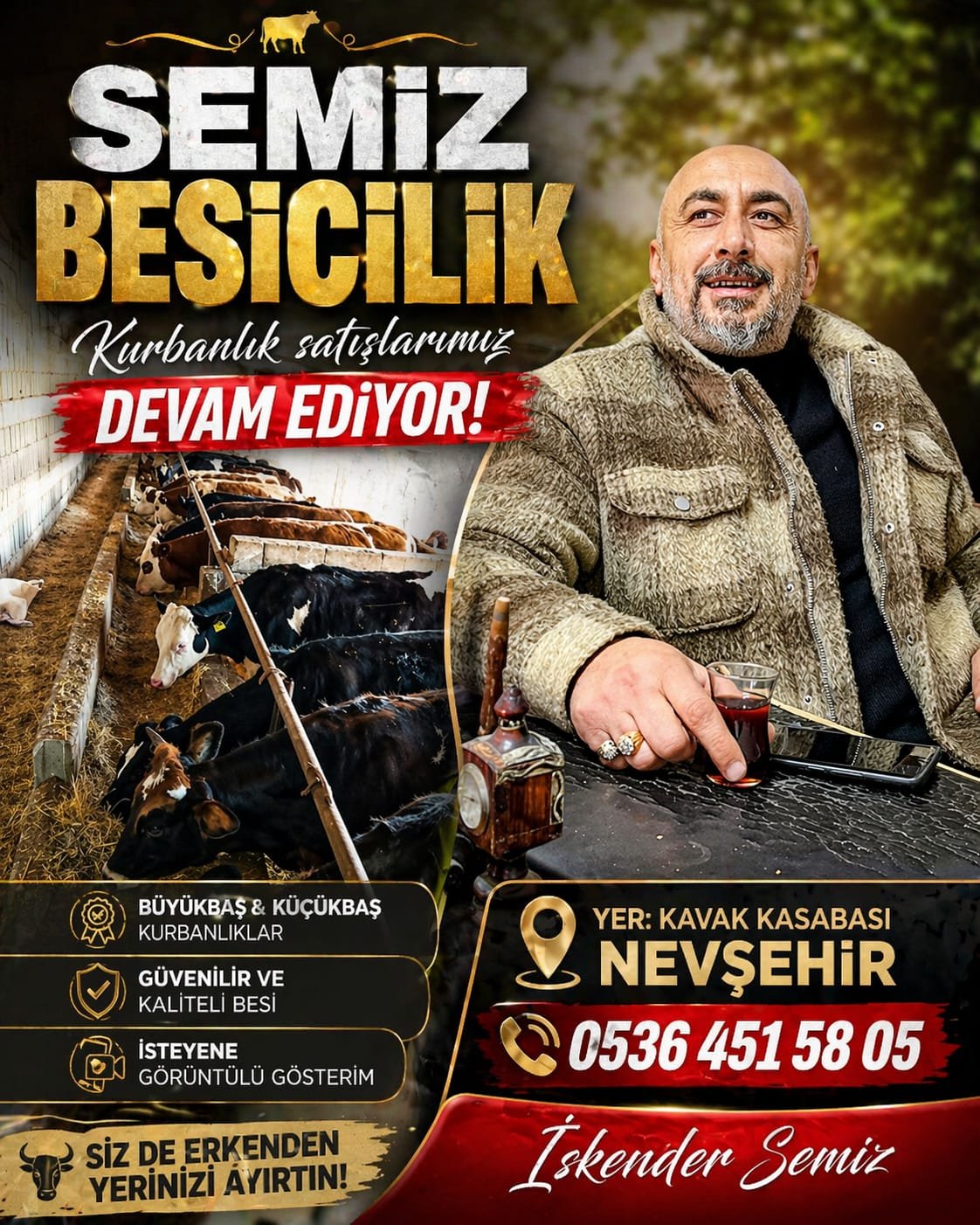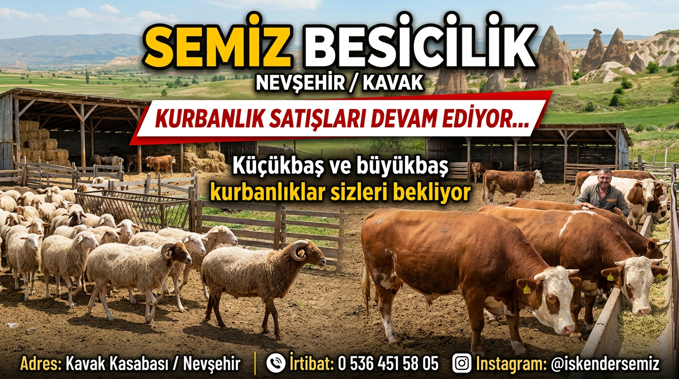 Nevşehir Kavak Kasabası’nda faaliyet gösteren Semiz Besicilik, yaklaşan kurban dönemi öncesinde vatandaşlara güvenilir, sağlıklı ve hijyenik kurbanlık hizmeti sunmaya devam ediyor.