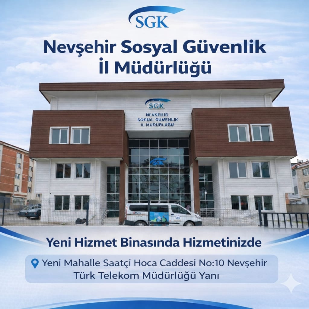 Nevşehir Sosyal Güvenlik İl Müdürlüğü yetkilileri, vatandaşların sosyal güvenlikle ilgili tüm işlemlerini artık Yeni Mahalle Saatçi Hoca Caddesi No:10 adresindeki yeni hizmet binasında gerçekleştirebileceklerini ifade ederek, tüm vatandaşları yeni binaya davet etti.